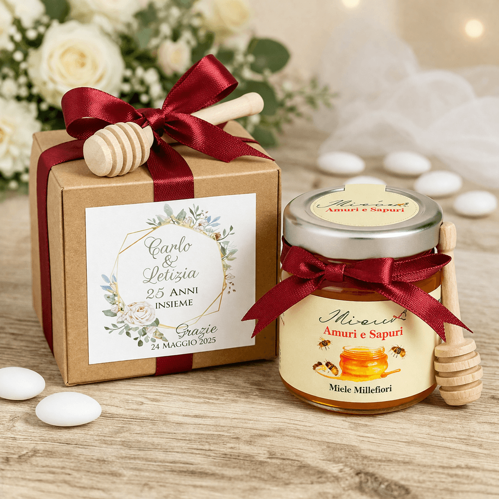 Il barattolo di miele personalizzato è un’ottima idea per un regalo, personalizzato e unico. Il barattolo di miele è realizzato in vetro e ha una capacità di 45 grammi. La scatola personalizzata è realizzata in cartoncino e può essere personalizzata con il nome dell’acquirente o del destinatario del regalo. Il miele è prodotto in Italia e ha un sapore delicato e dolce.