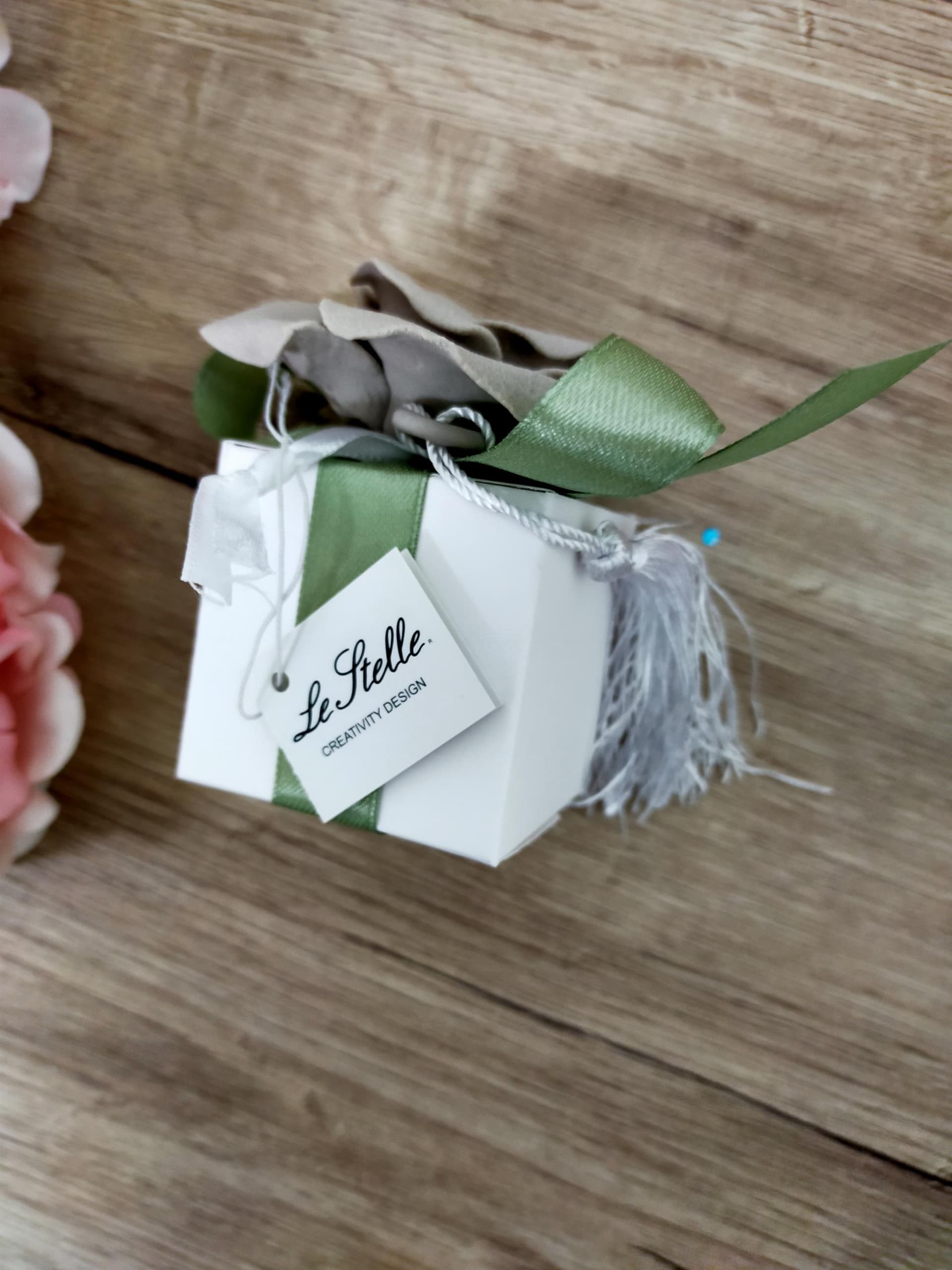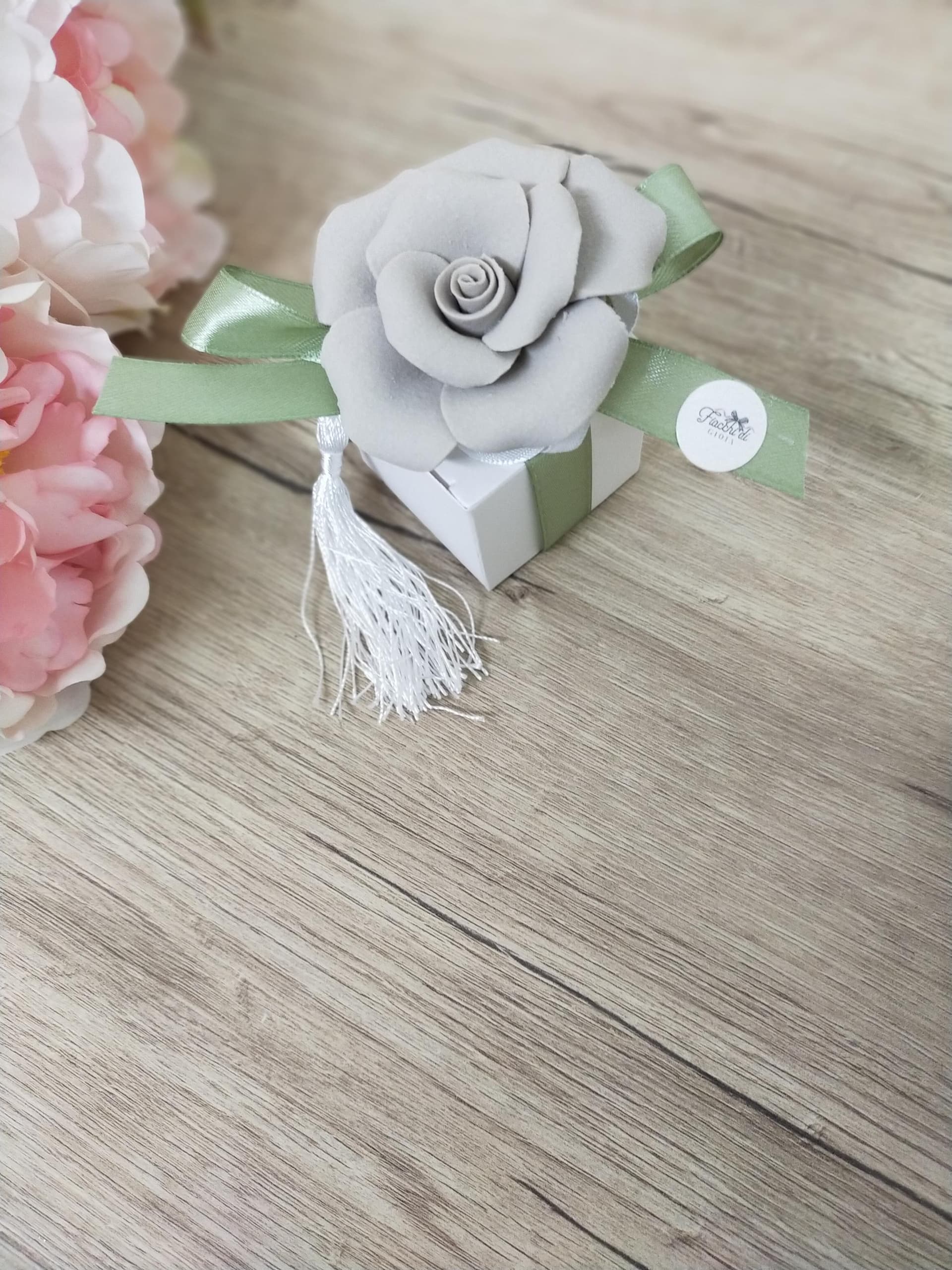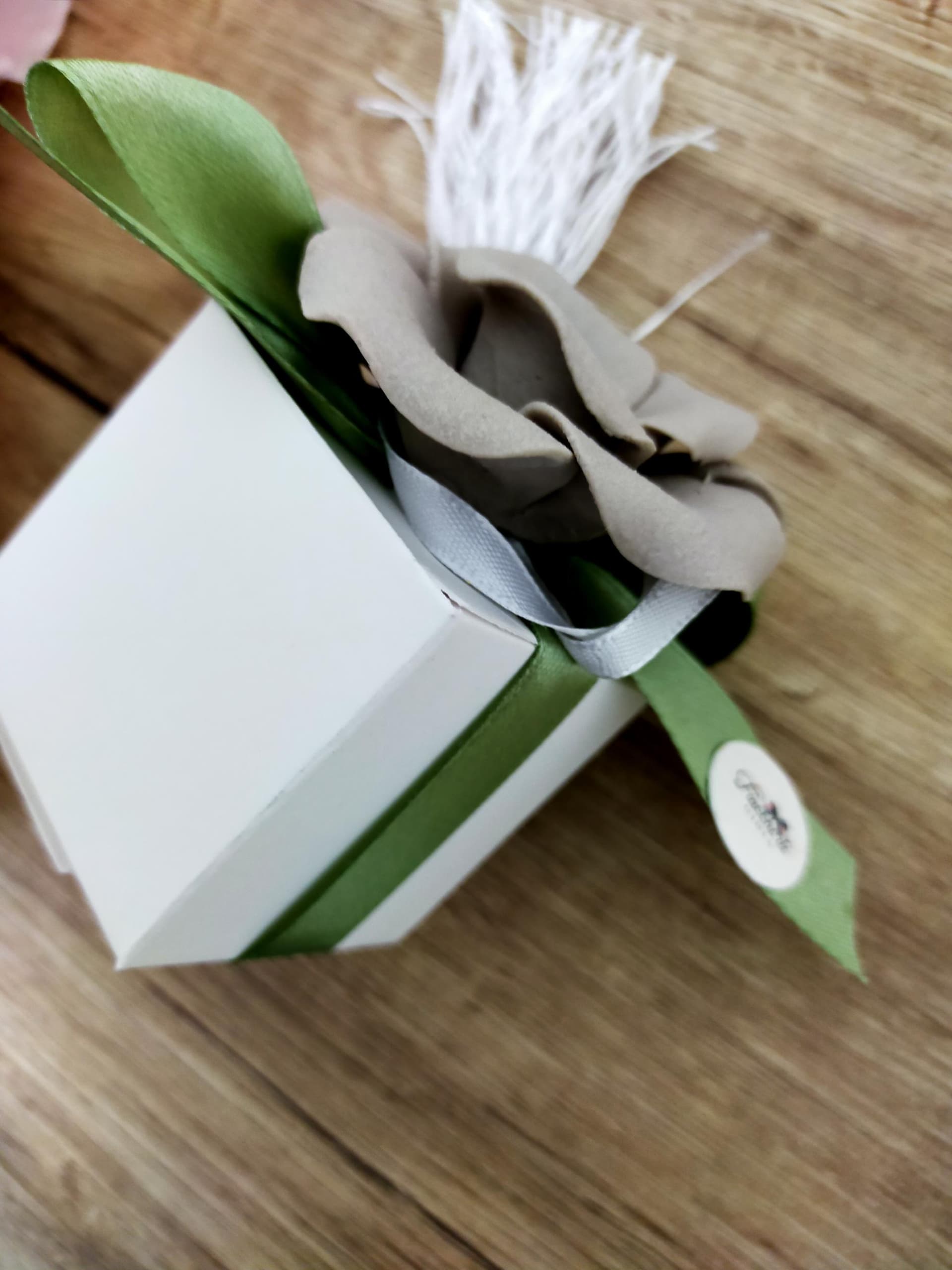 Bomboniera scatolina segnaposto con fiore in ceramica