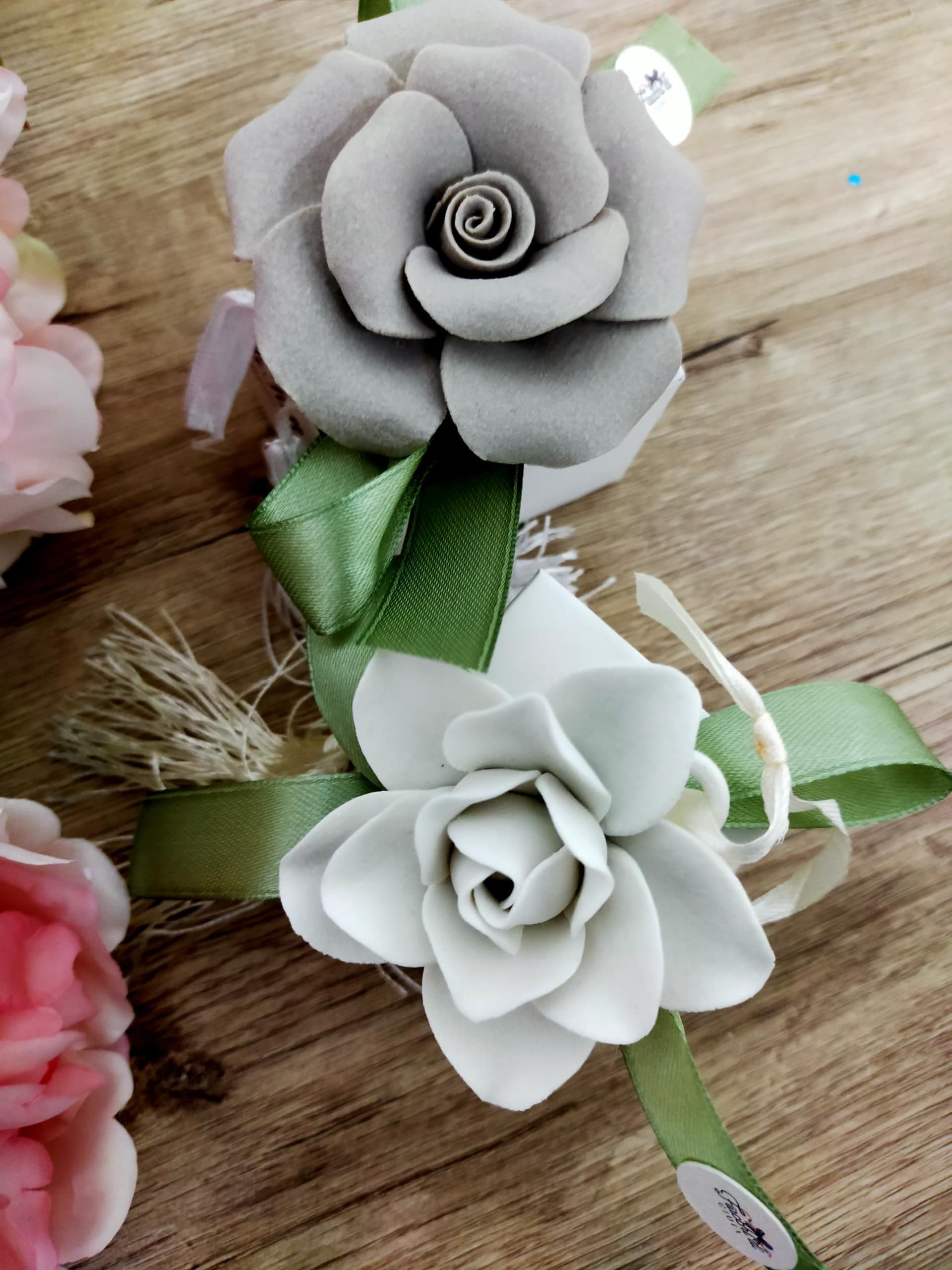 Adorabili bomboniere scatoline con fiori di ceramica utilizzabili anche come segnaposto, sempre chic ed ideali per il tuo evento.