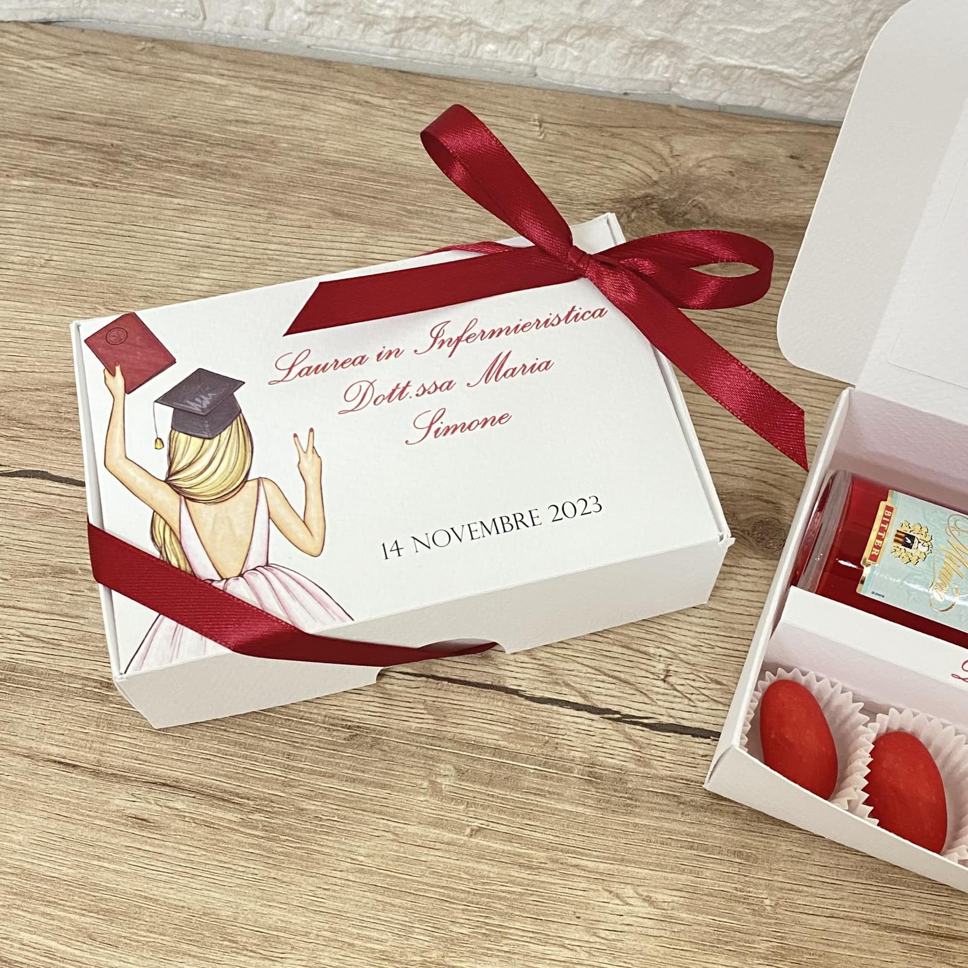 Le scatole personalizzate sono il tocco che rende ogni bomboniera unica e memorabile. Potete aggiungere nomi, date speciali o messaggi personalizzati sulle scatole, trasformandole in un ricordo tangibile dell'evento. Questa personalizzazione le rende il regalo perfetto per celebrare il destinatario in modo speciale.