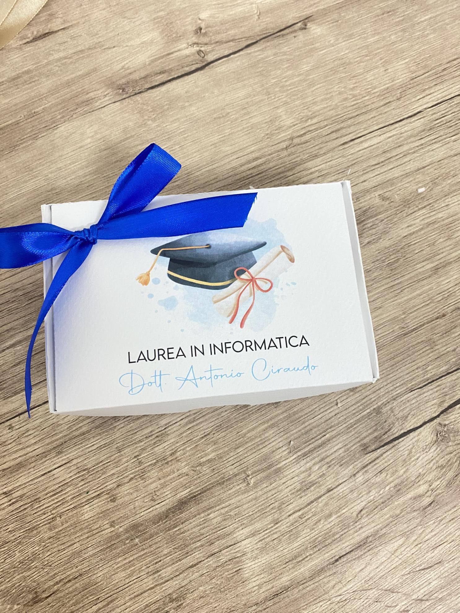 Celebra un traguardo così importante con una scatola laurea personalizzata, pensata per raccontare la tua storia e rendere unico ogni dettaglio.