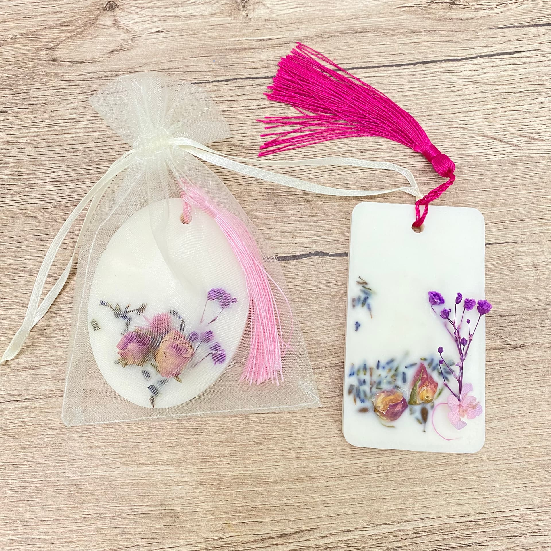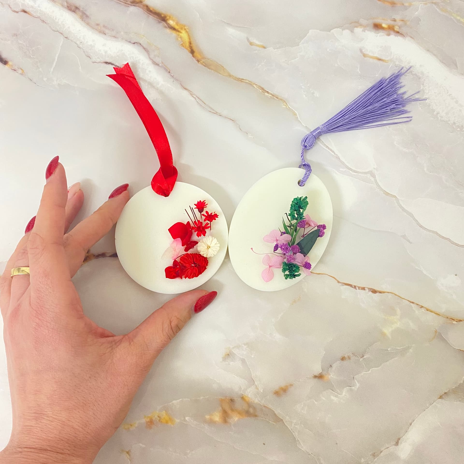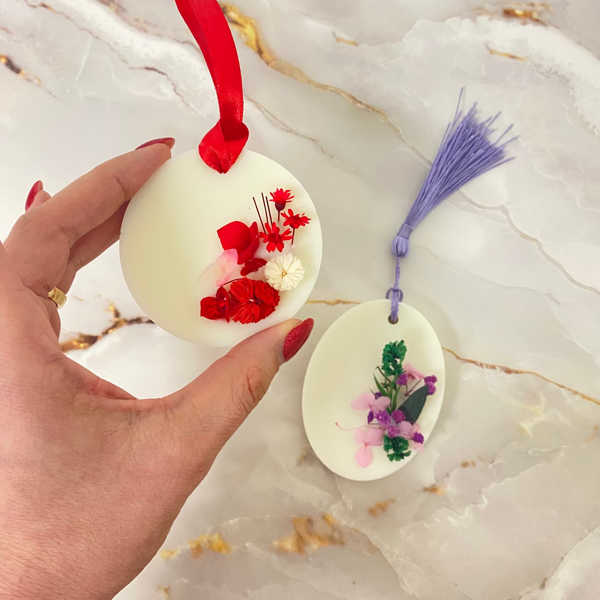 Immergiti nell'incanto e nella delicatezza di queste meravigliose tart in cera di soia, adornate con eleganti fiori secchi e graziosi nastrini o nappine. Ogni tart è una piccola opera d'arte profumata, creata con cura artigianale e arricchita con la fragranza avvolgente della cera di soia.
