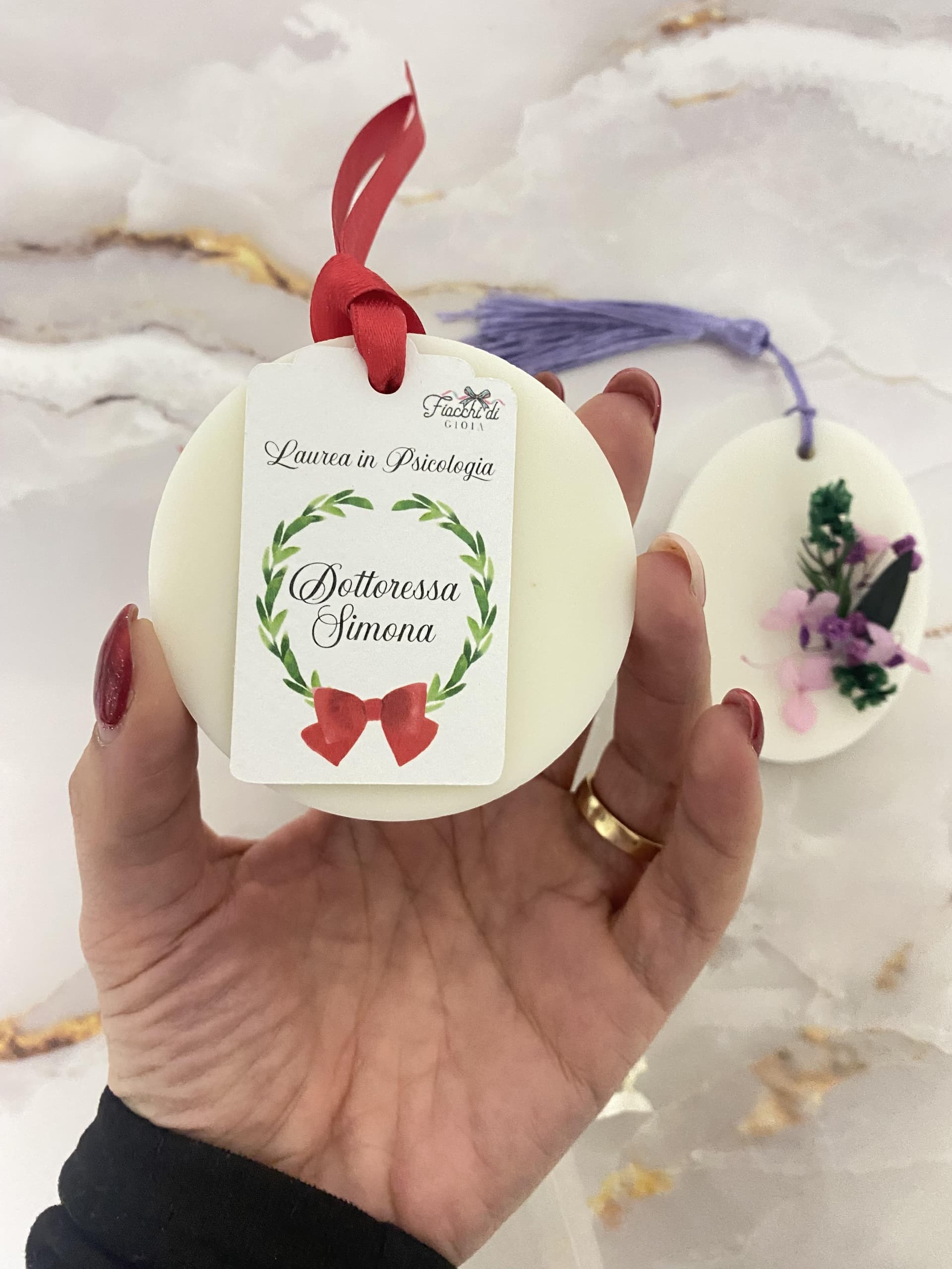 Queste tart non sono solo candele, ma vere e proprie gioielli profumati che portano con sé un'atmosfera di raffinatezza e bellezza. La loro decorazione con fiori secchi e nastrini o nappine aggiunge un tocco di eleganza e romanticismo, trasformandole in piccole bomboniere preziose o segnaposto che lasciano un'impronta indelebile in ogni occasione speciale.