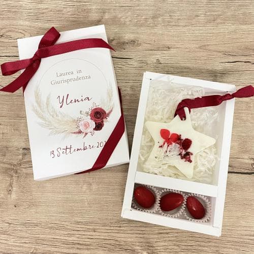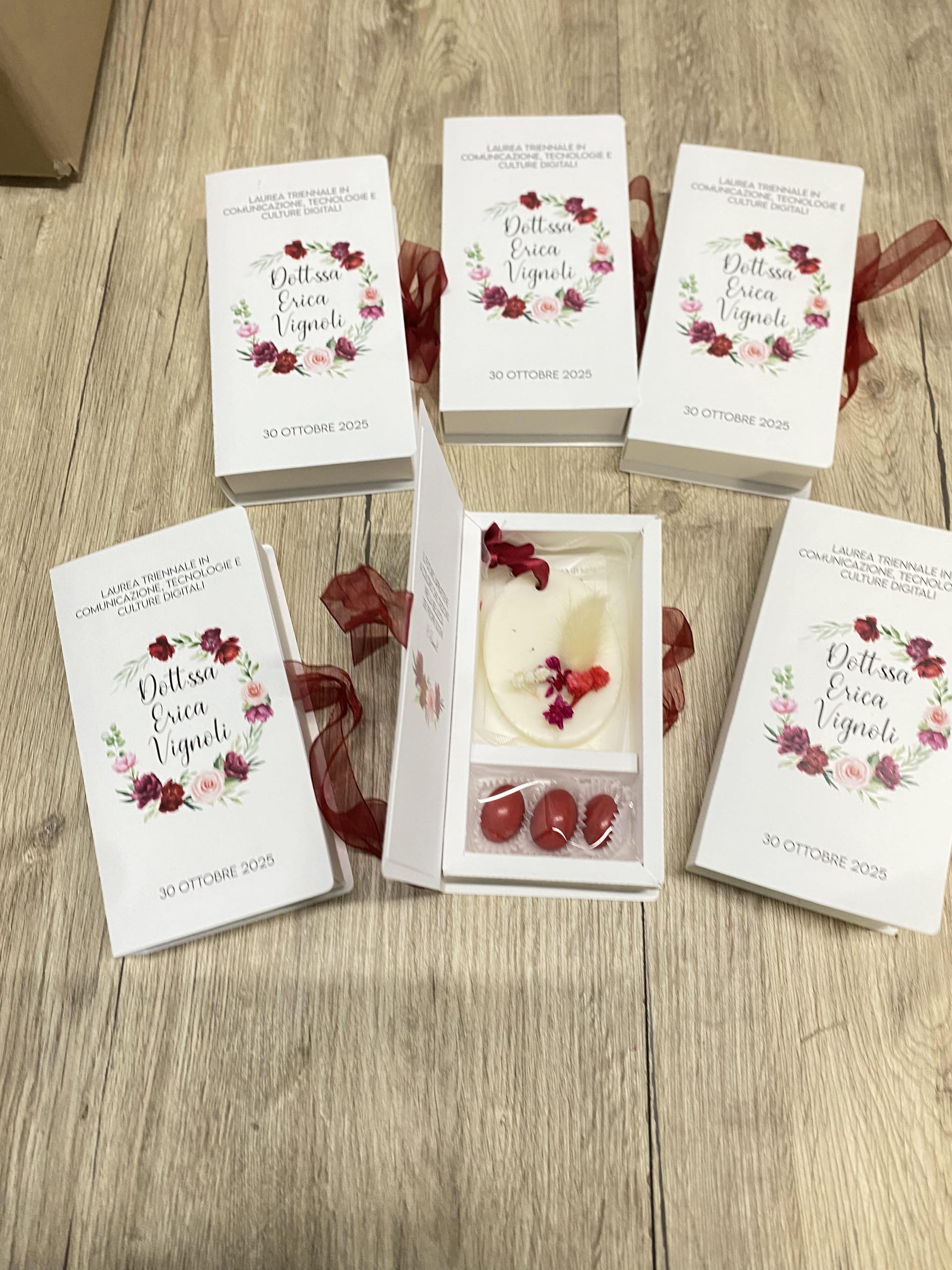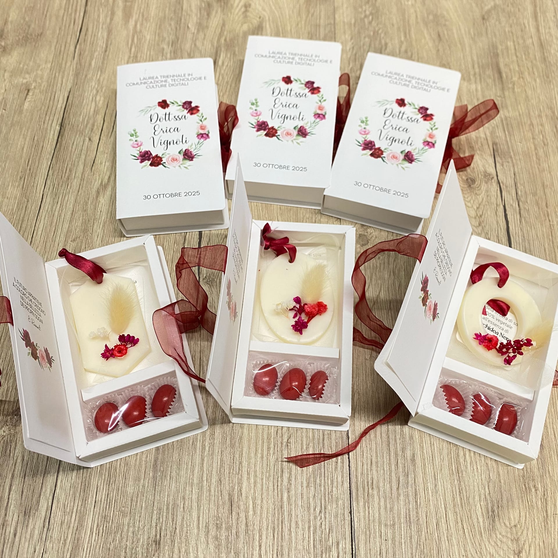 bomboniera di laurea elegante, ringraziamento per amici e parenti, dono profumato che racconta con dolcezza un nuovo inizio.