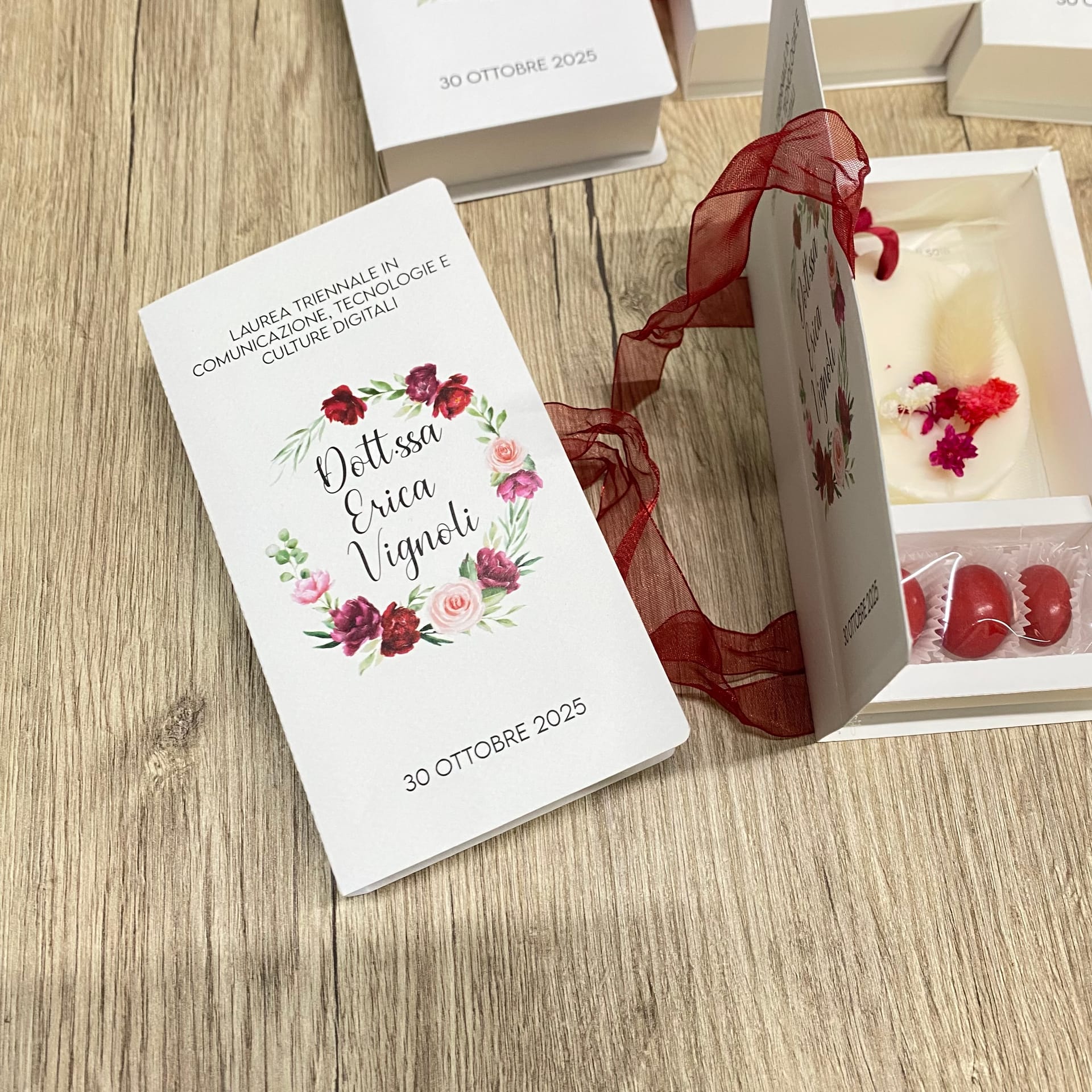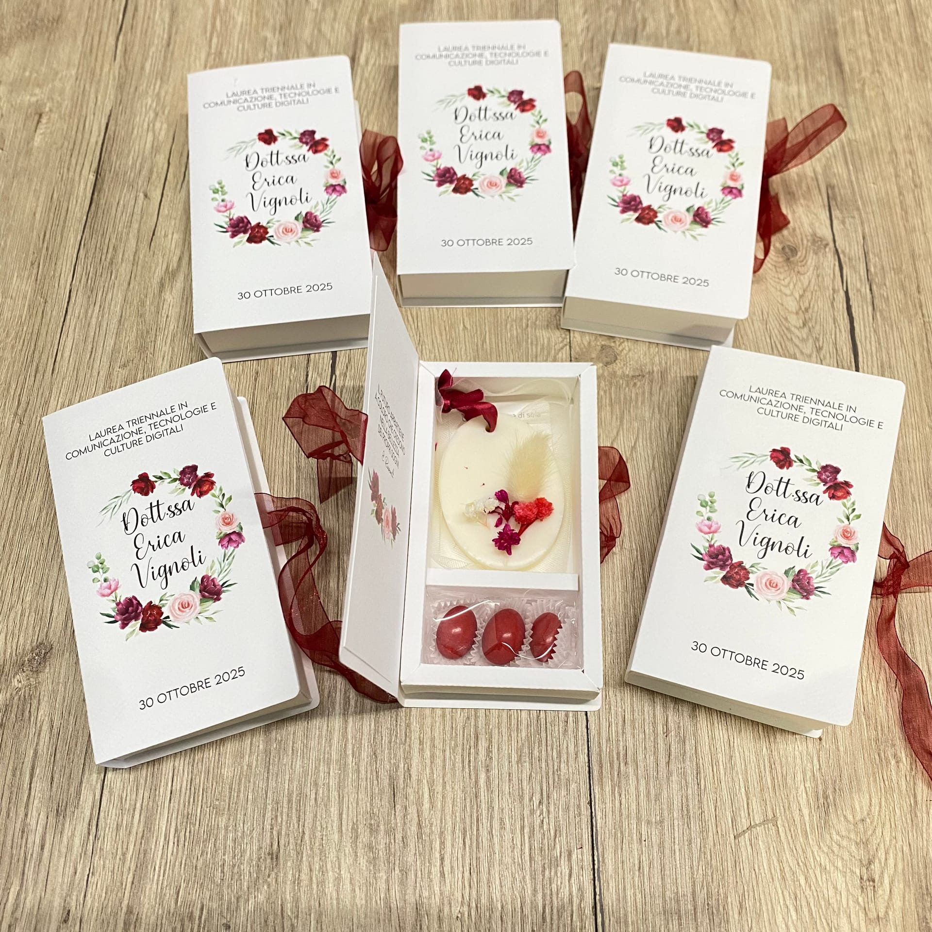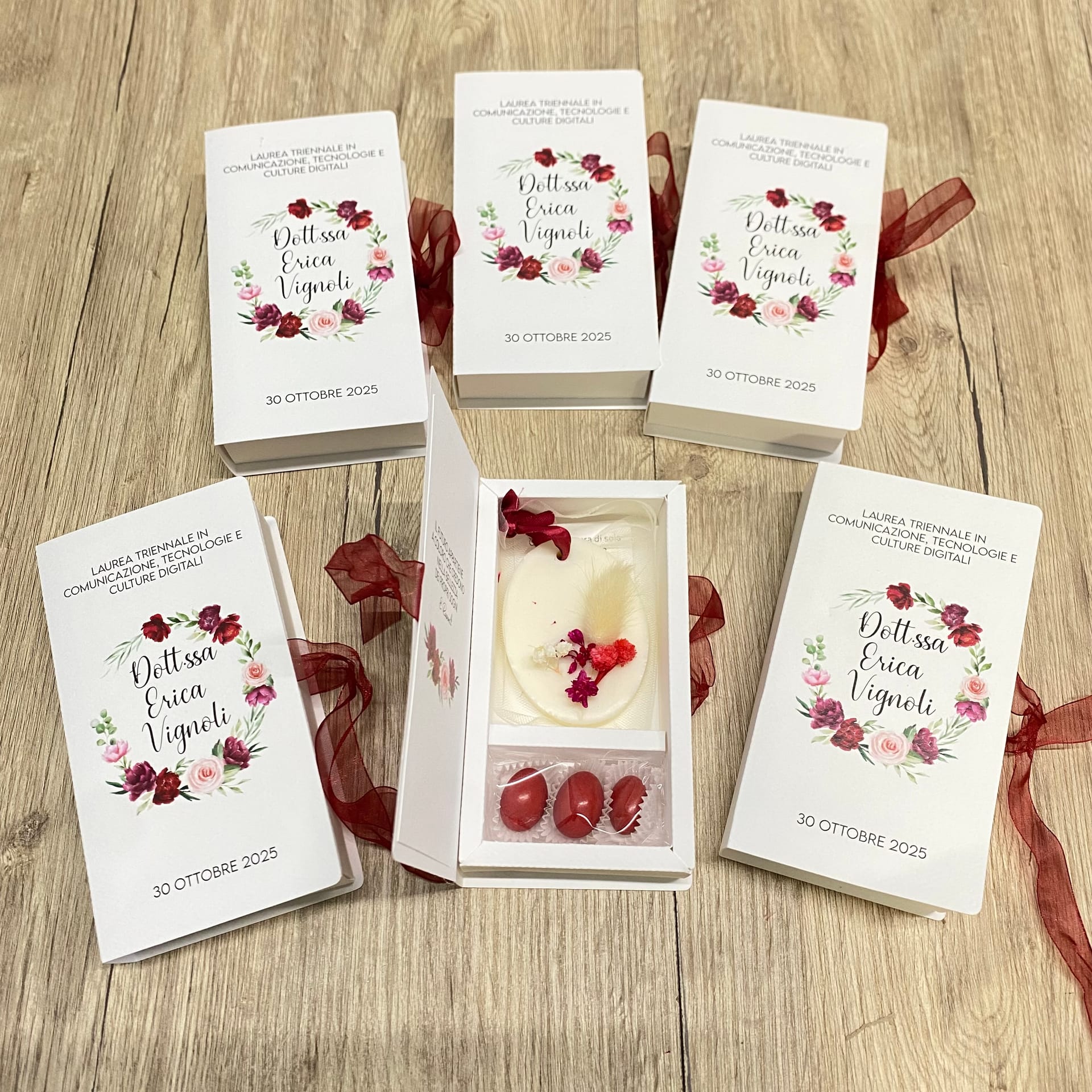 🎓 Candela tart profumata con scatola a libro personalizzata – Bomboniera di laurea