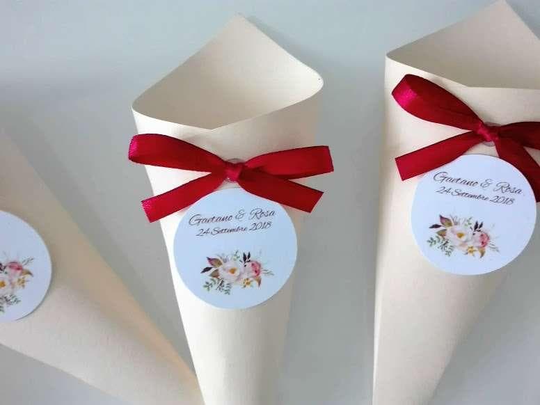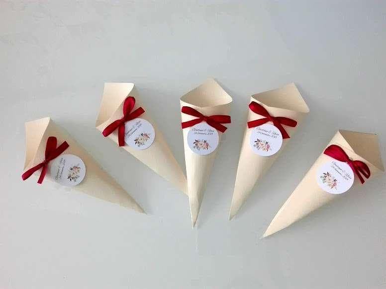 Cono porta riso o petali in cartoncino, con tag personalizzato e fiocco