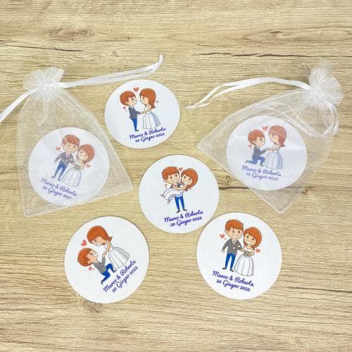 Morbidi fazzolettini confezionati singolarmente all'interno di una bustina in carta semi trasparente personalizzabile.