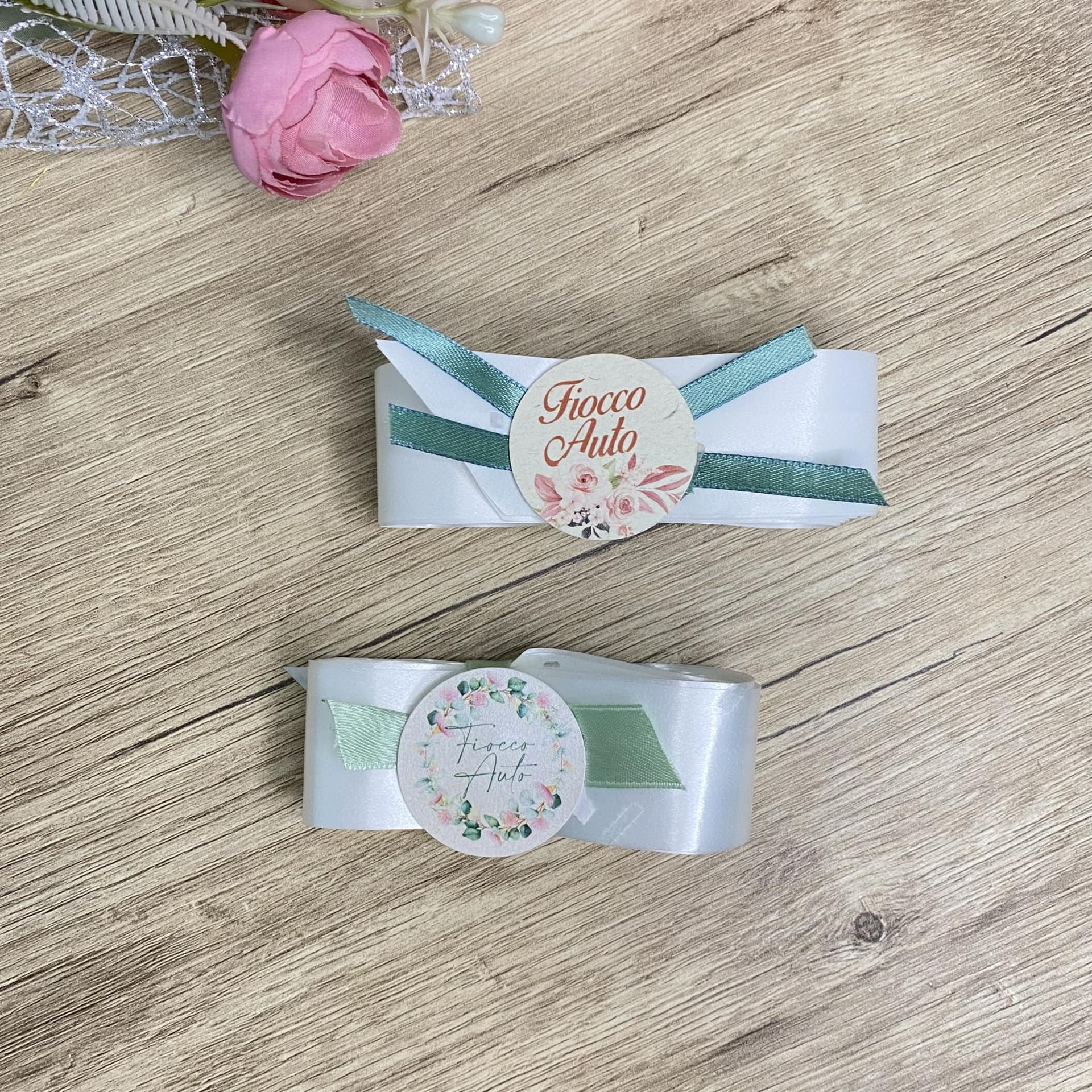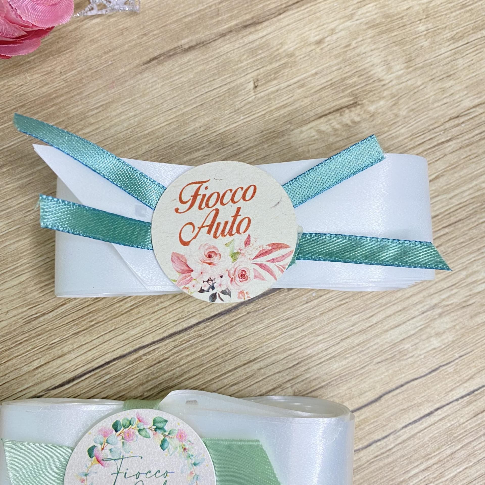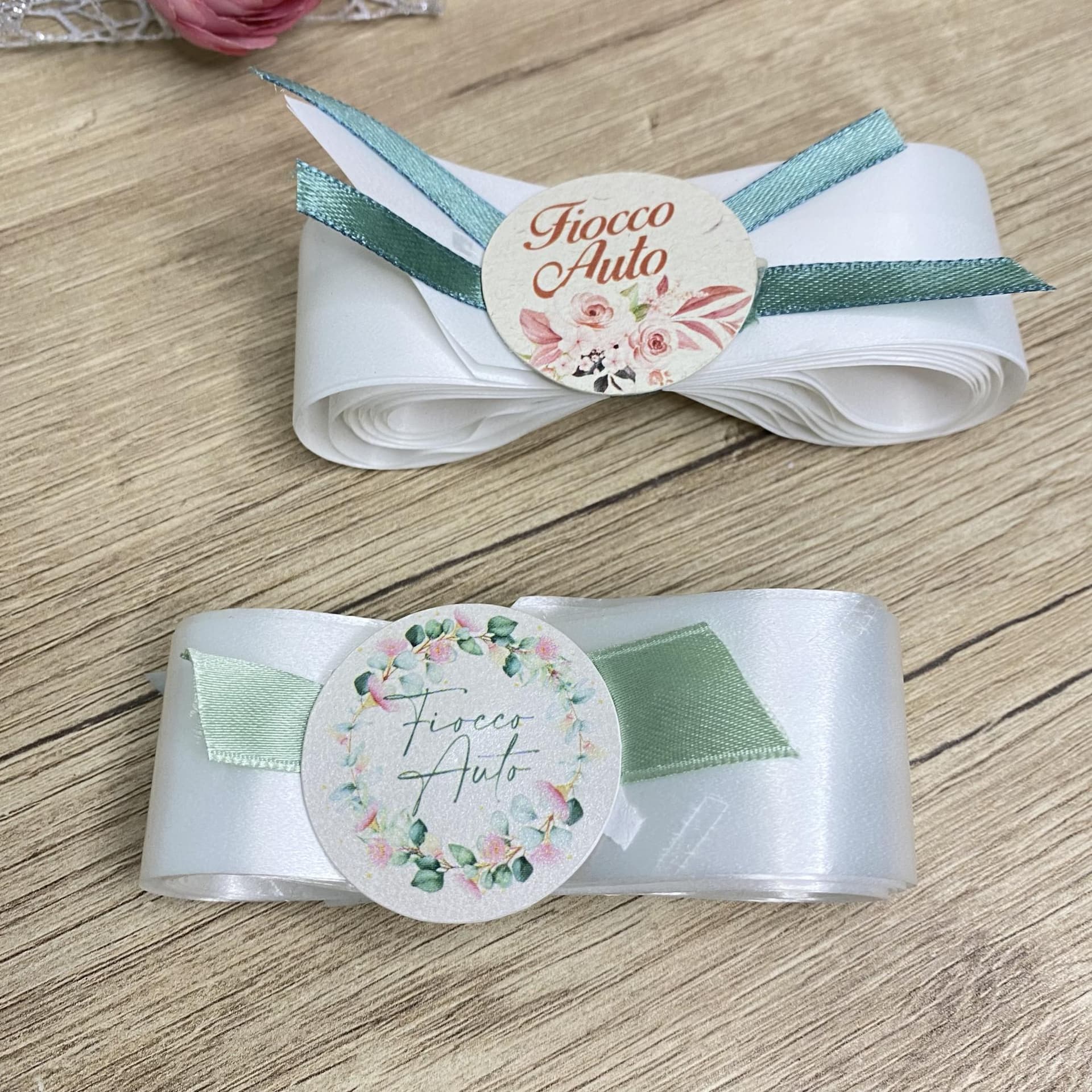 Ogni fiocco auto è composto da una coccarda con etichetta personalizzata