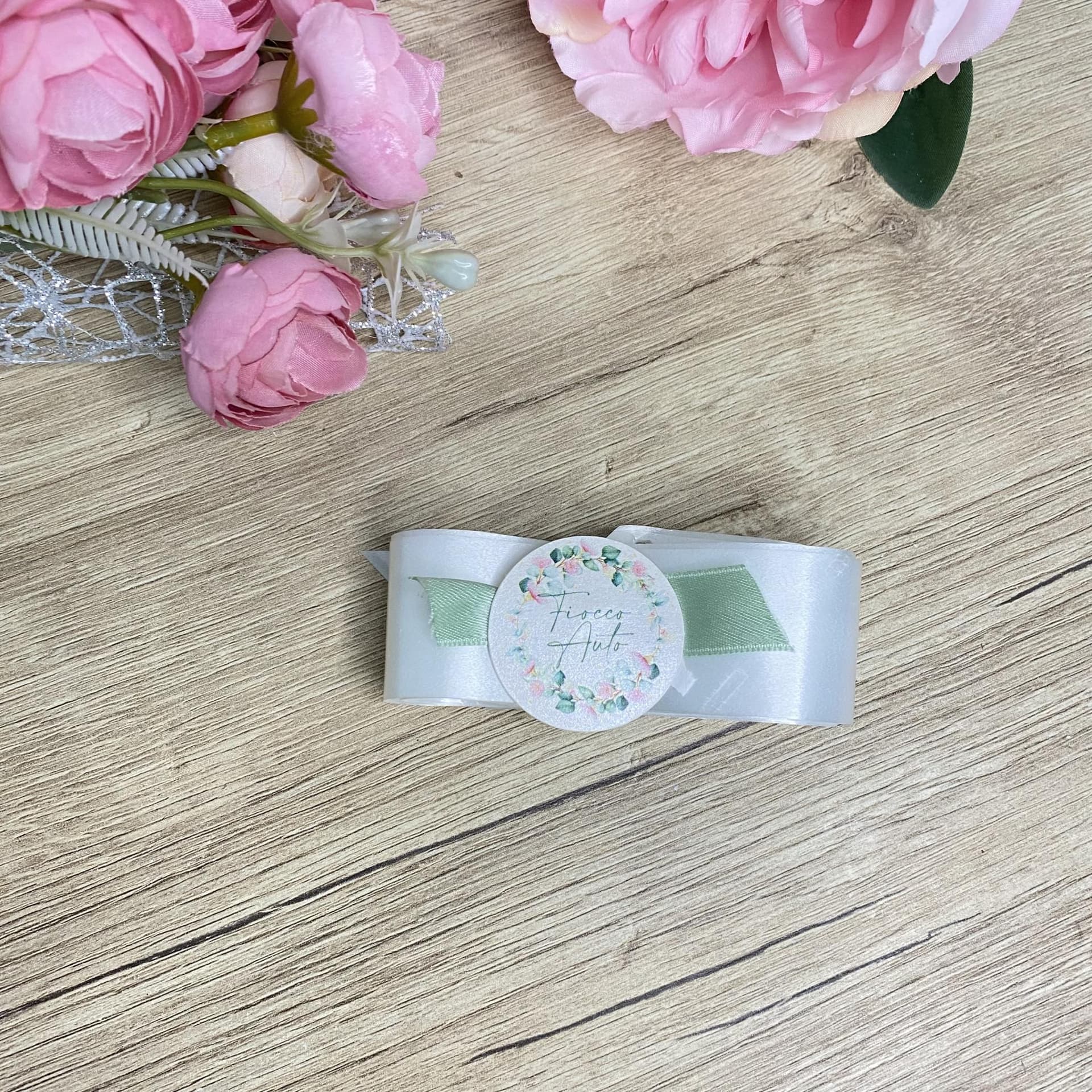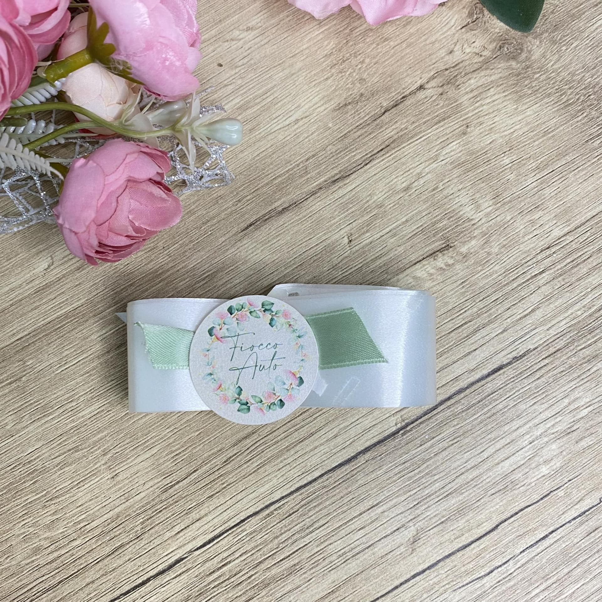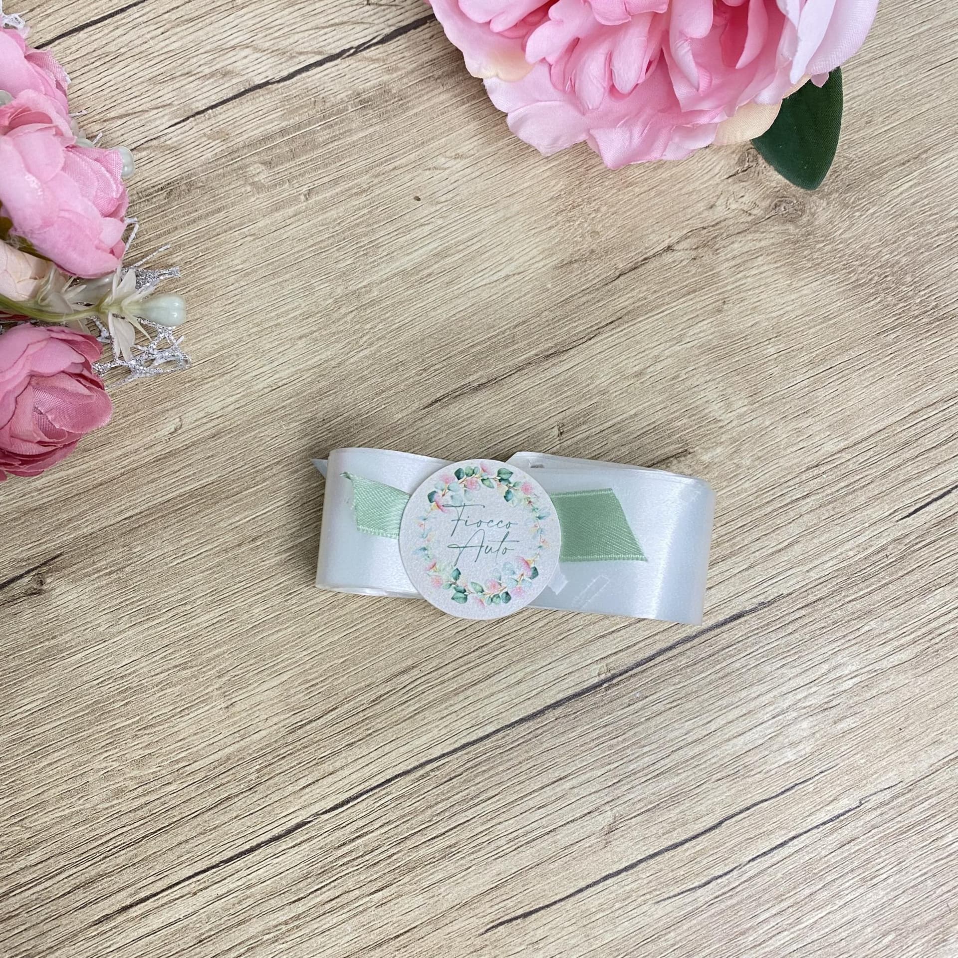 Ogni fiocco auto è composto da una coccarda con etichetta personalizzata