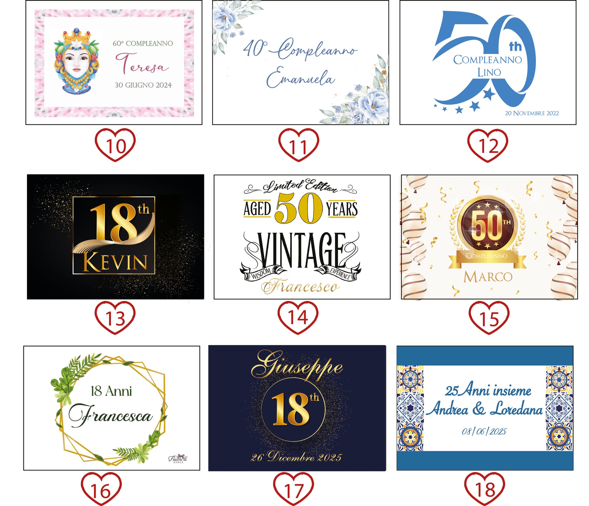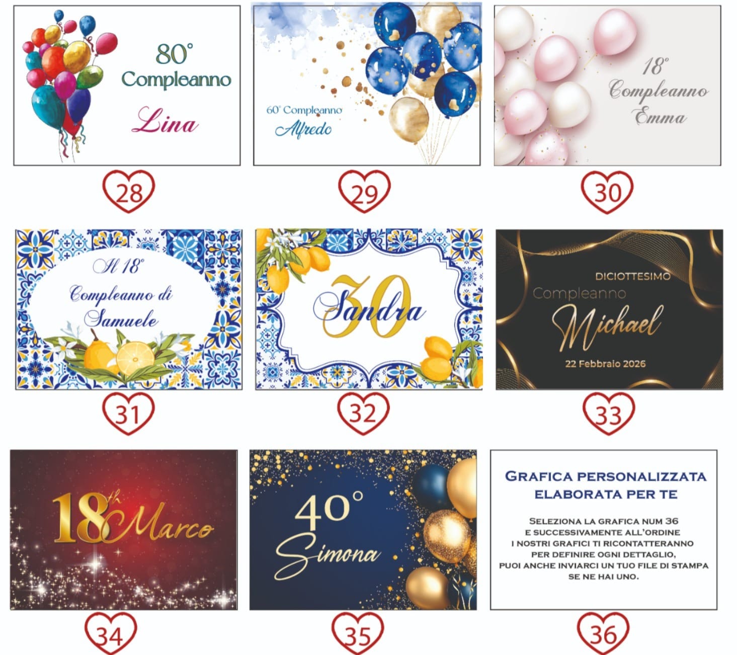 Scegli la tua grafica e scrivi nel riquadro sotto il numero della tua scelta.