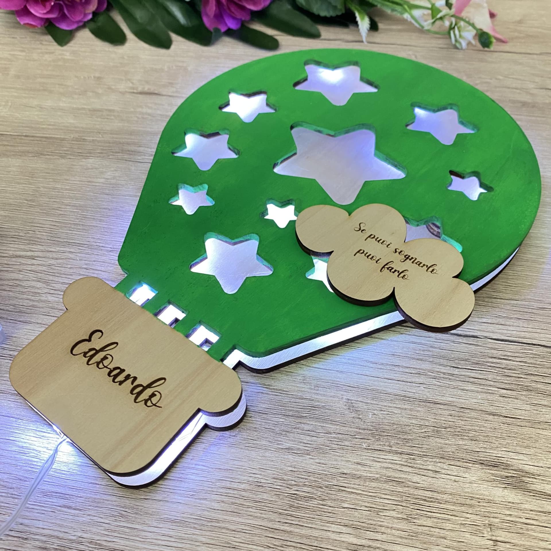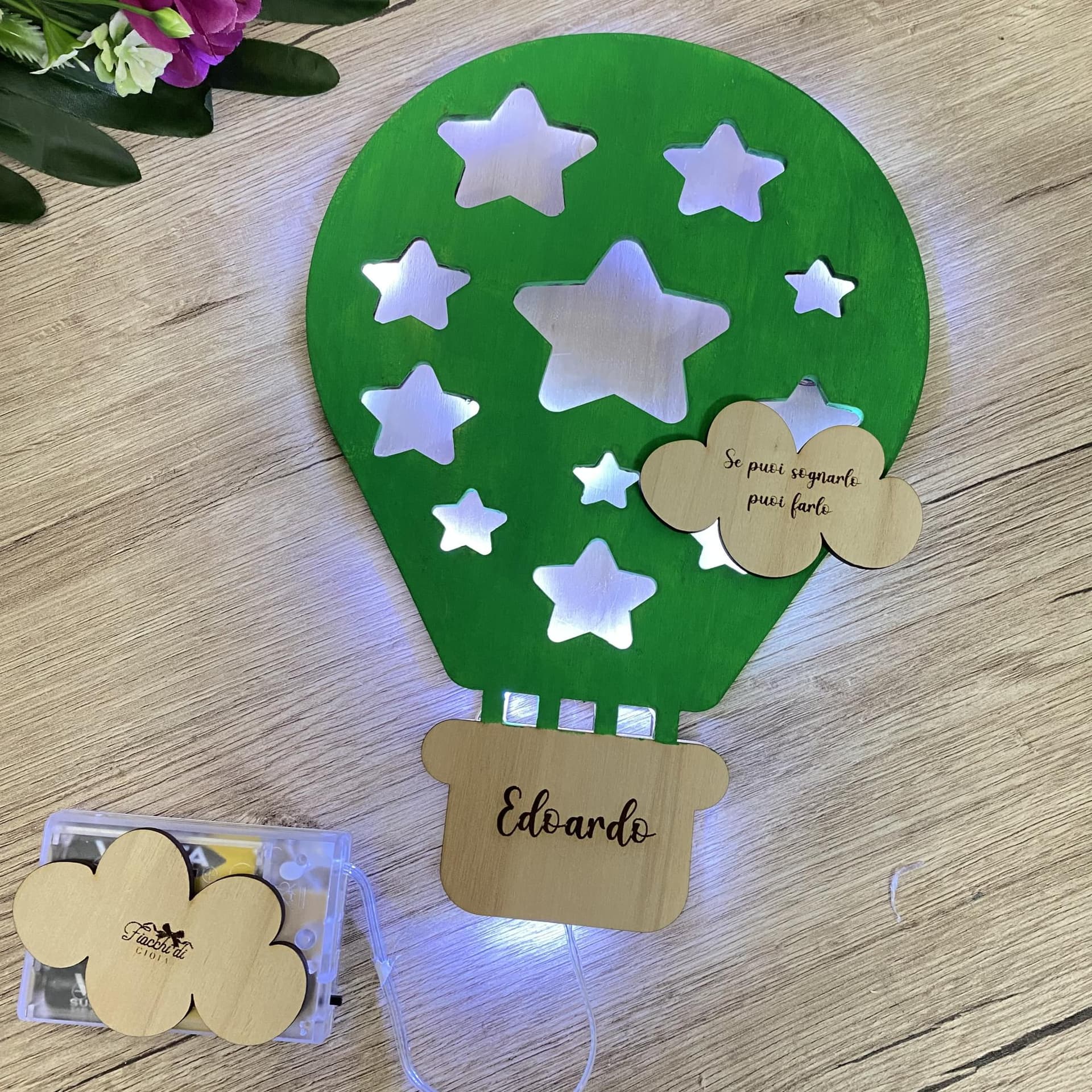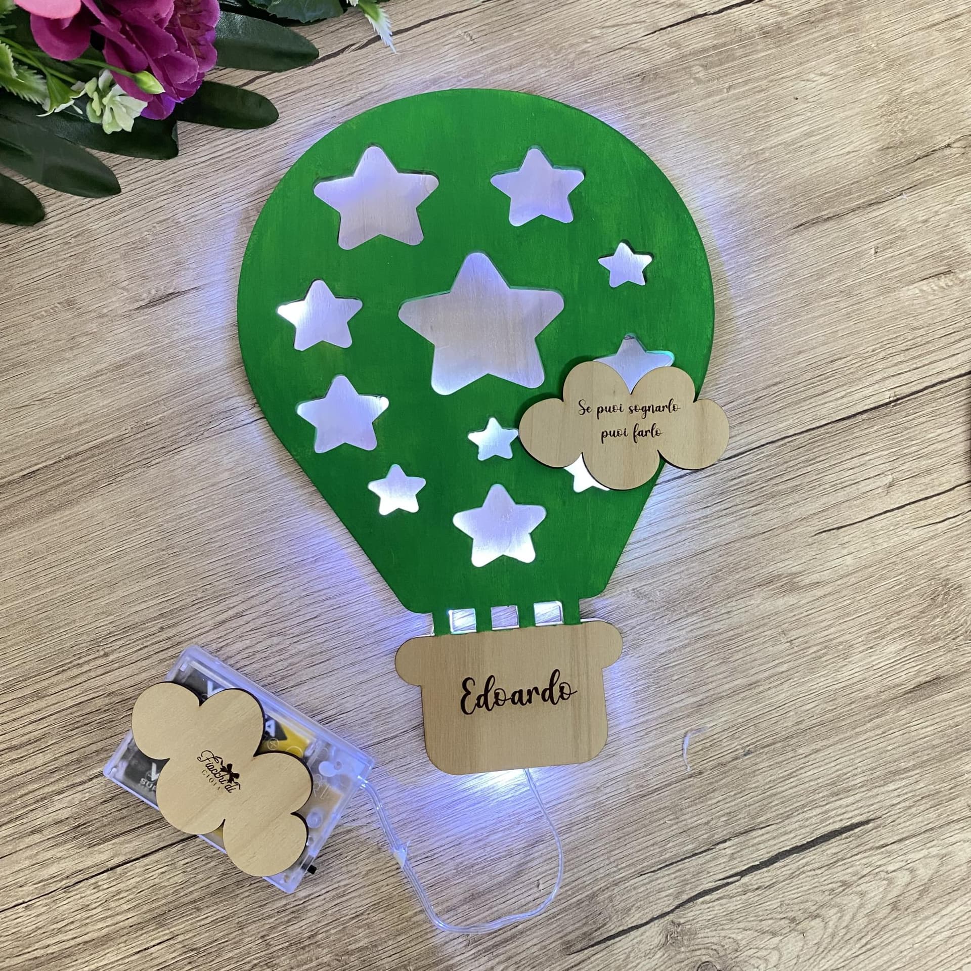 Lampada mongolfiera con luci a led alimentata a batterie.