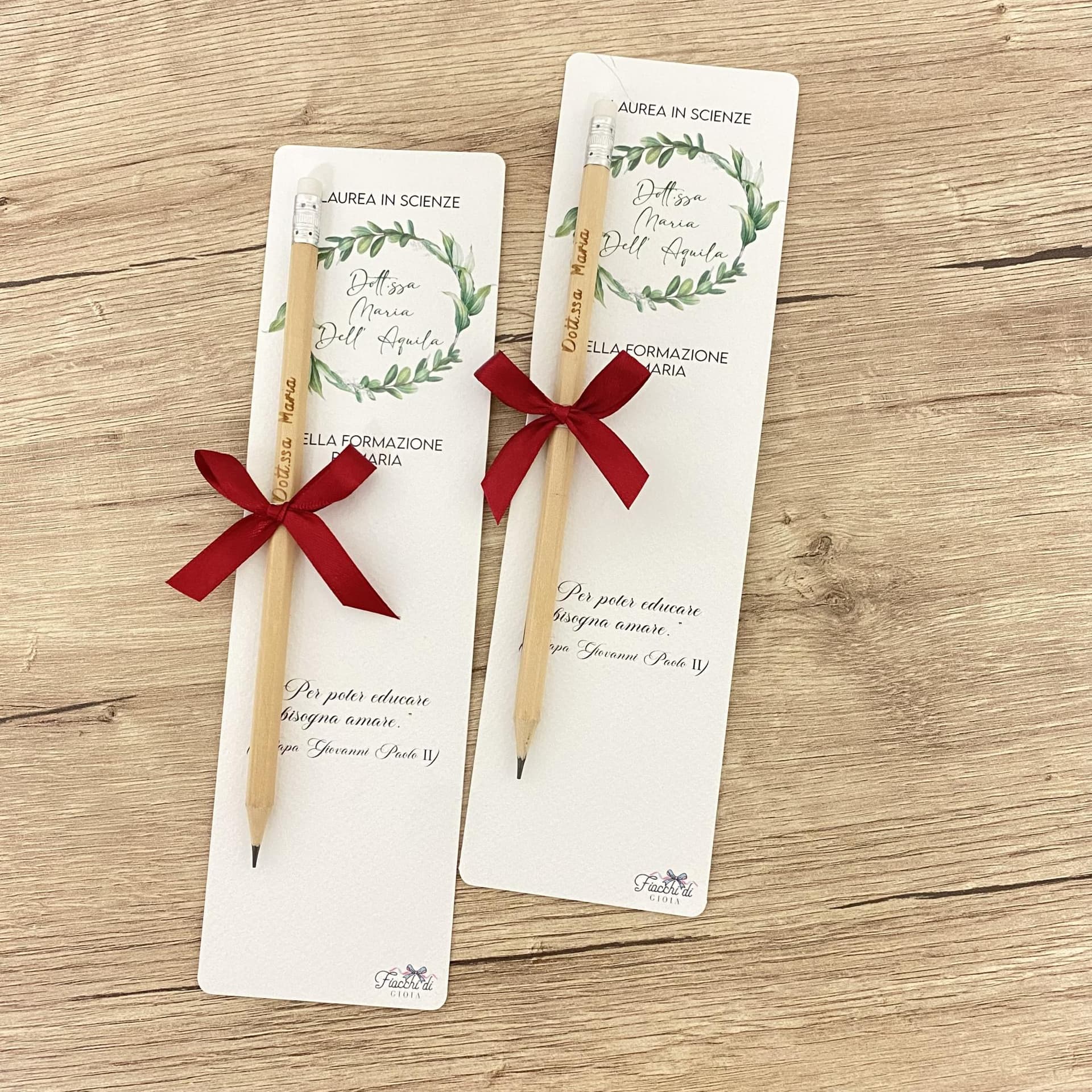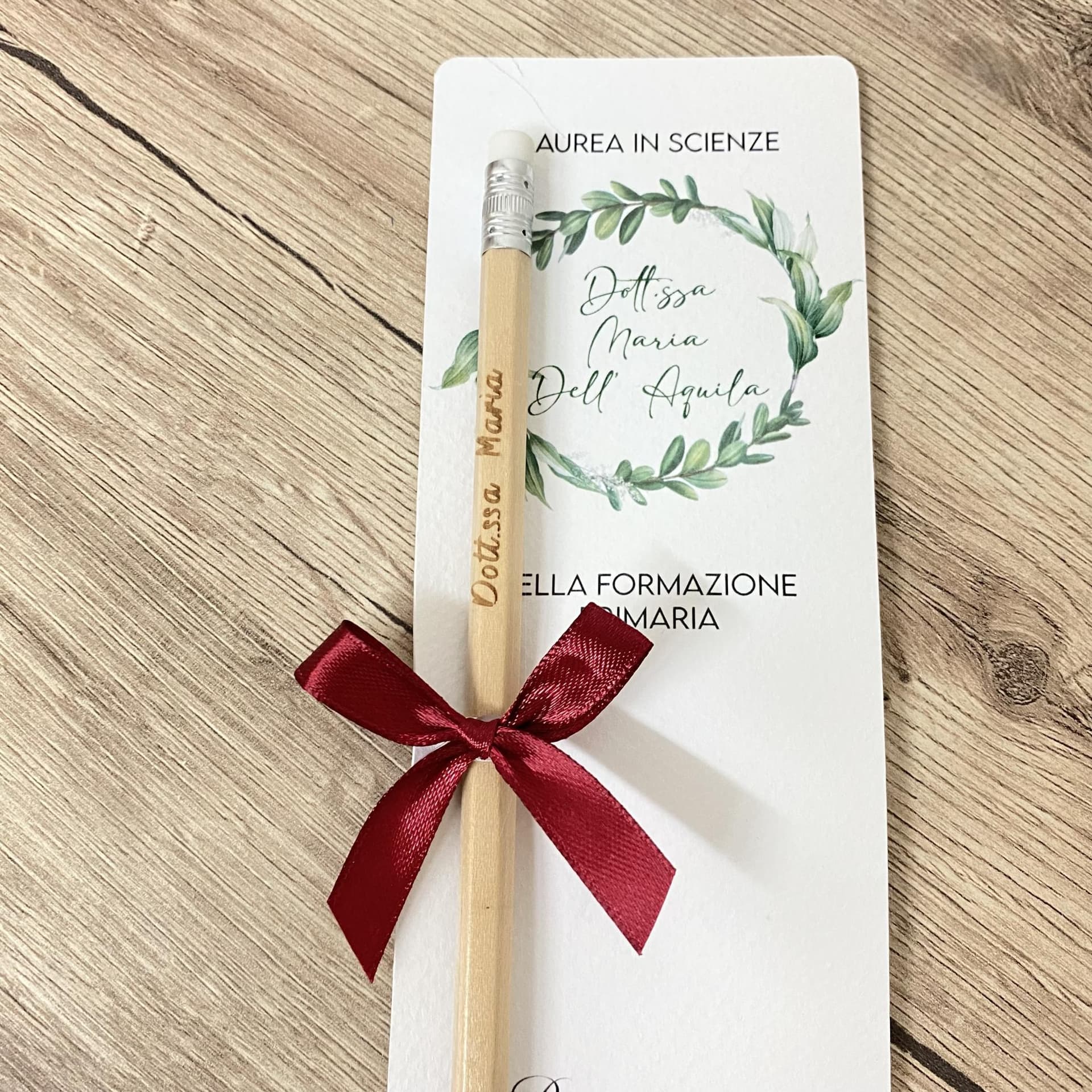 La nostra matita con incisione laser personalizzata è una bomboniera low cost ma curata nei dettagli, ideale per lauree, comunioni, battesimi o qualsiasi evento importante.