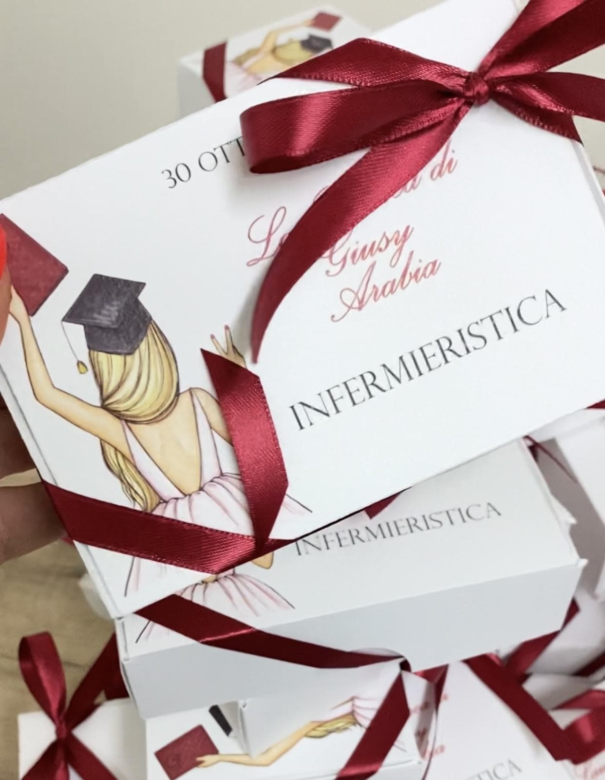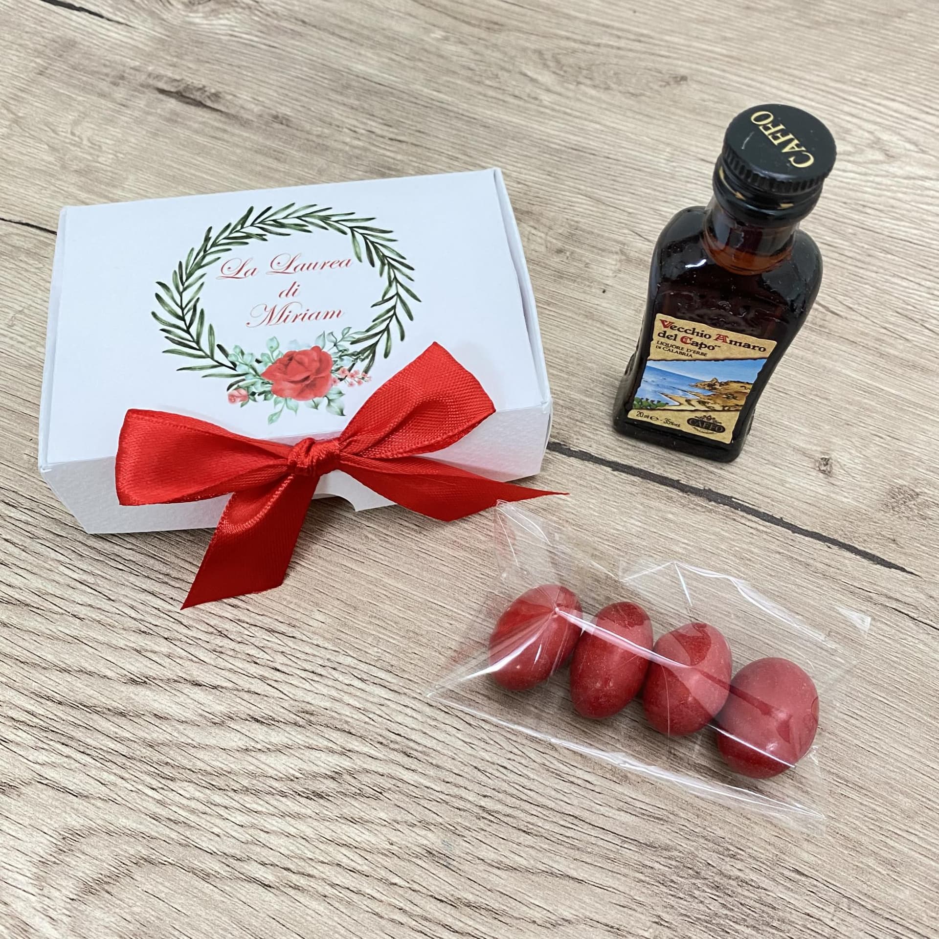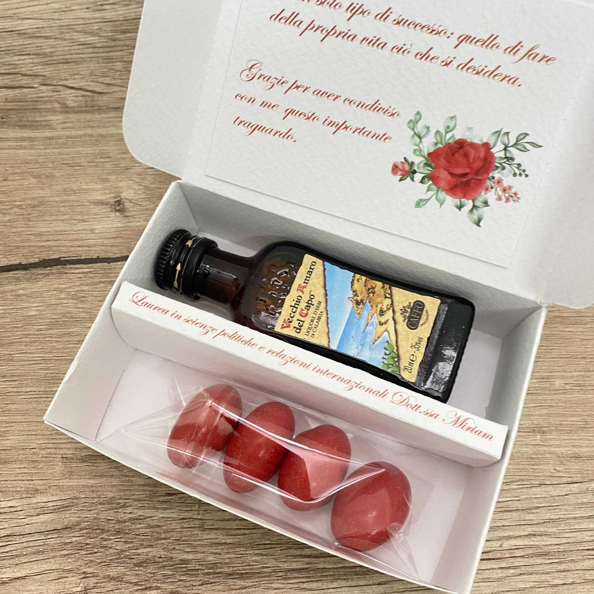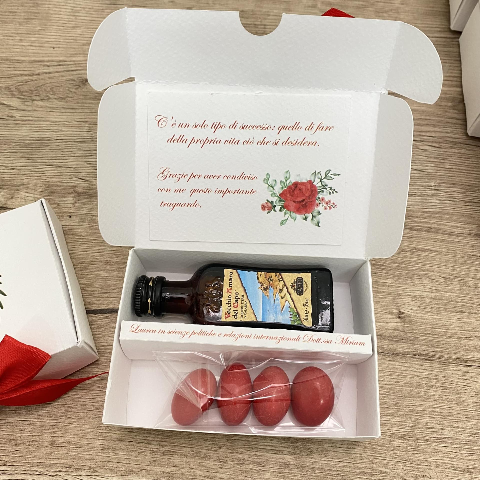 Mignon miniatura bottiglia con scatola personalizzata bomboniera laurea