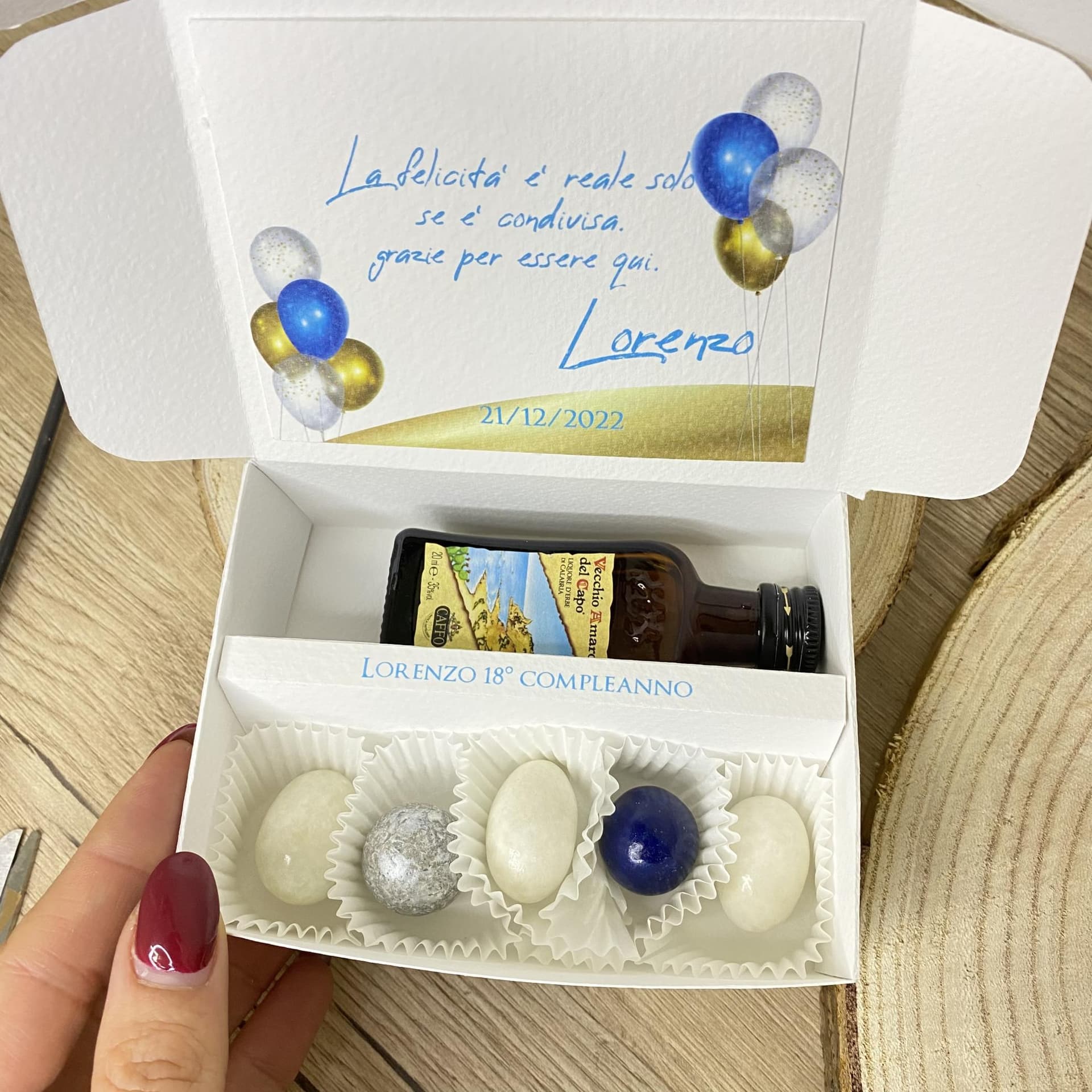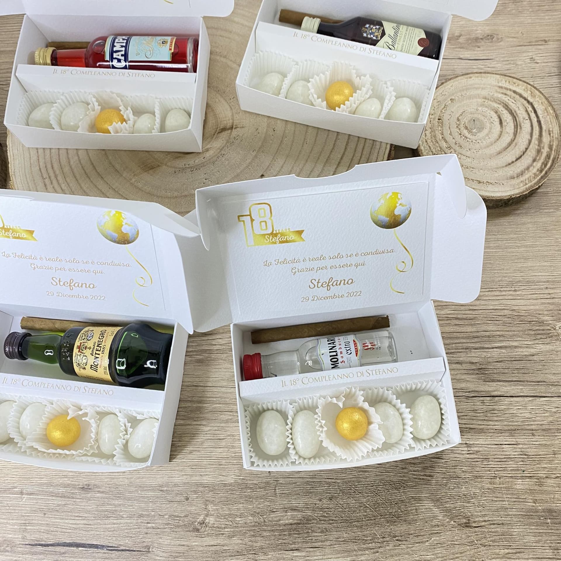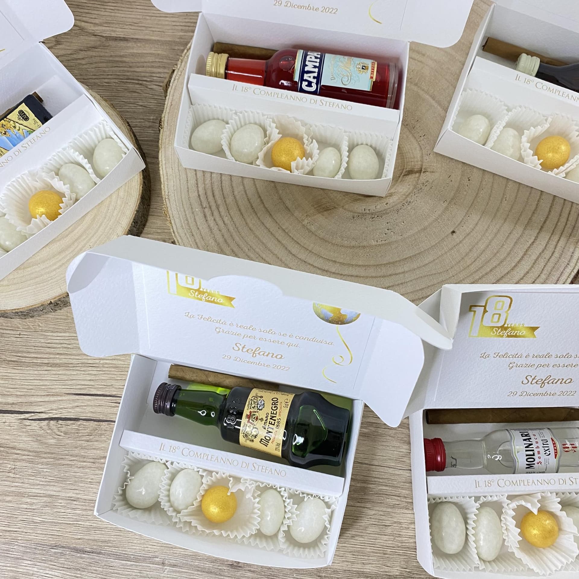 Il liquore all'interno è autentico. le bottiglie sono originali, la scatola viene personalizzata con grafica su richiesta di colori e stampe.