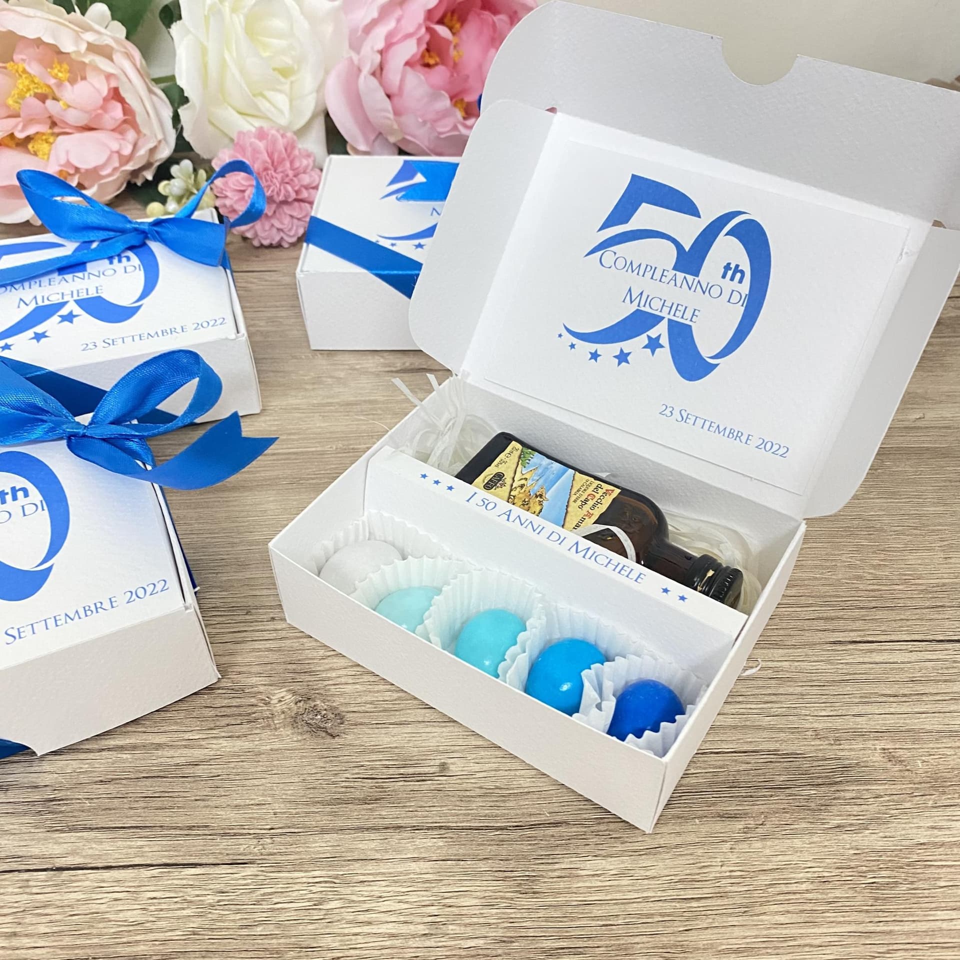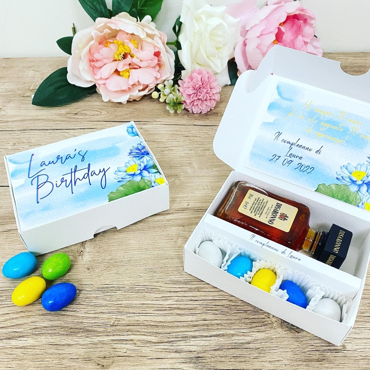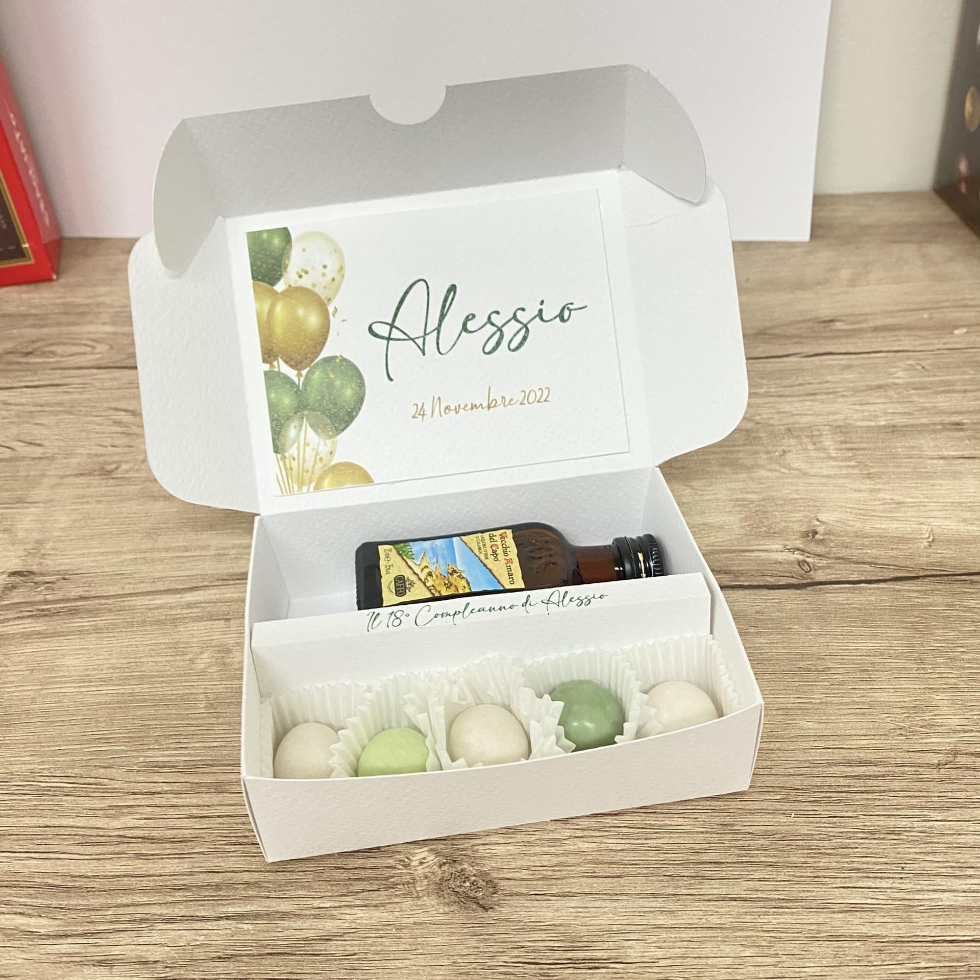 Il liquore all'interno è autentico. le bottiglie sono originali, la scatola viene personalizzata con grafica su richiesta di colori e stampe.