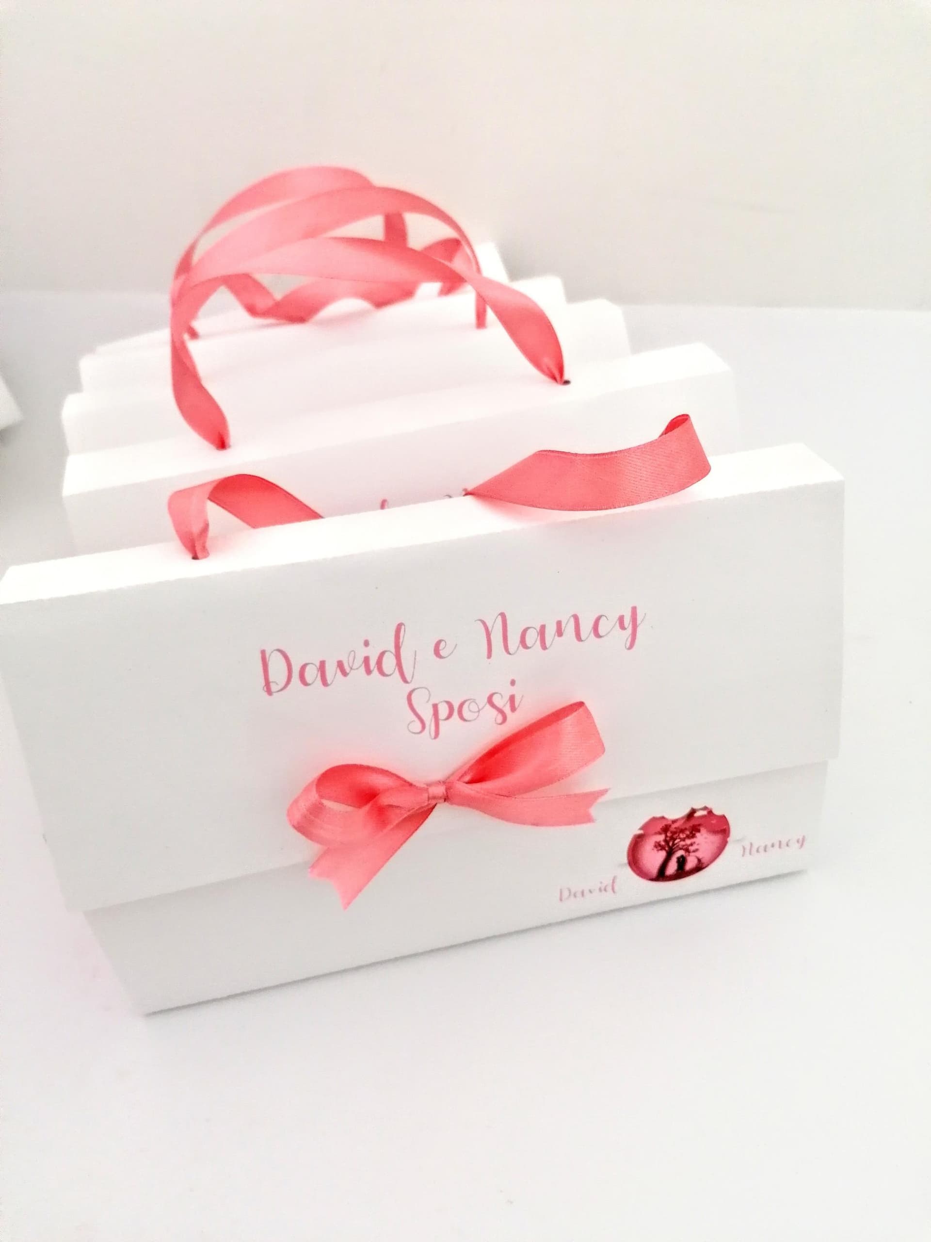 Ogni bomboniera verrà stampata e personalizzata secondo le esigenze del cliente, potendo scegliere tra tante grafiche elaborate appositamente dopo l'ordine,