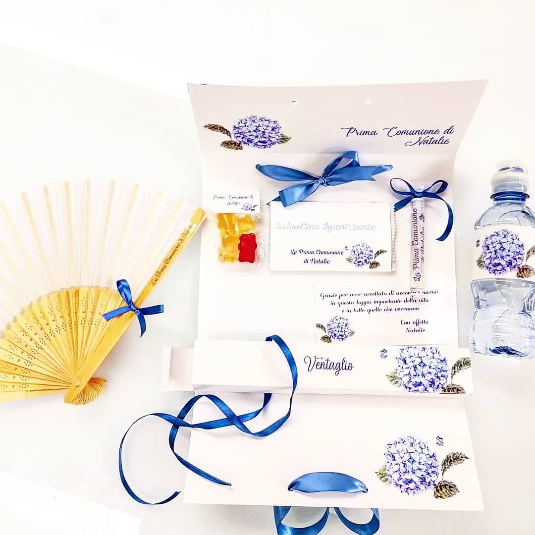 Ogni ventaglio è custodito in una scatola personalizzata, curata nei minimi dettagli, che racchiude 7 gustosi confetti, simbolo di felicità e prosperità.