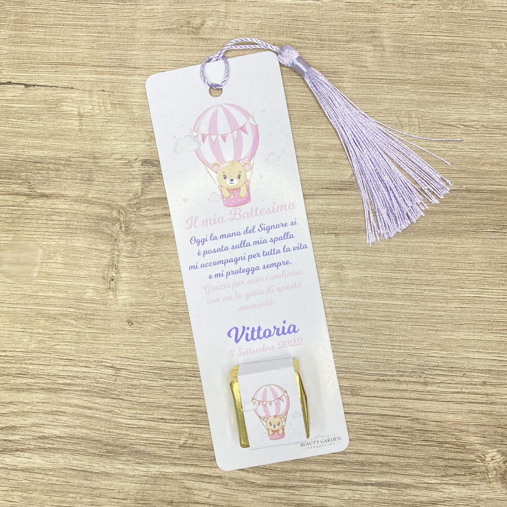 Segnalibro in cartoncino, con stampa personalizzata e un delizioso cioccolatino cremino in vari gusti assortiti. E' possibile personalizzare la grafica su richiesta, che verrà elaborata dopo l'ordine.