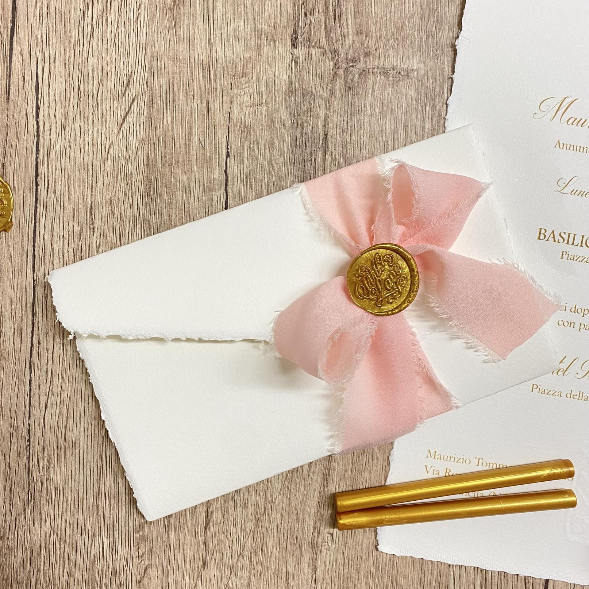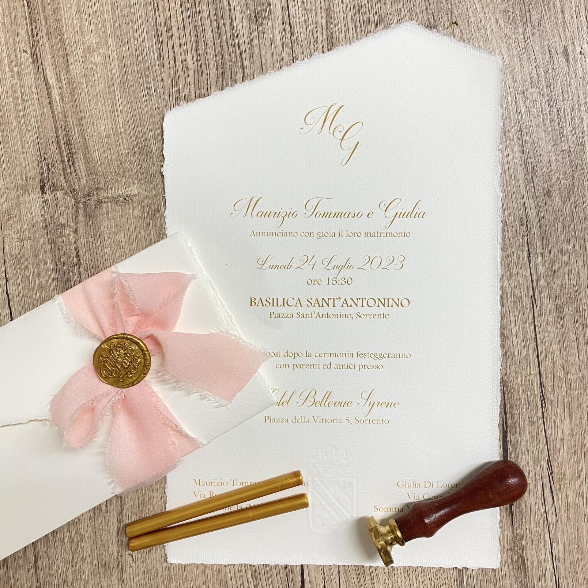 Partecipazione in carta Amalfi con nastro e cera lacca