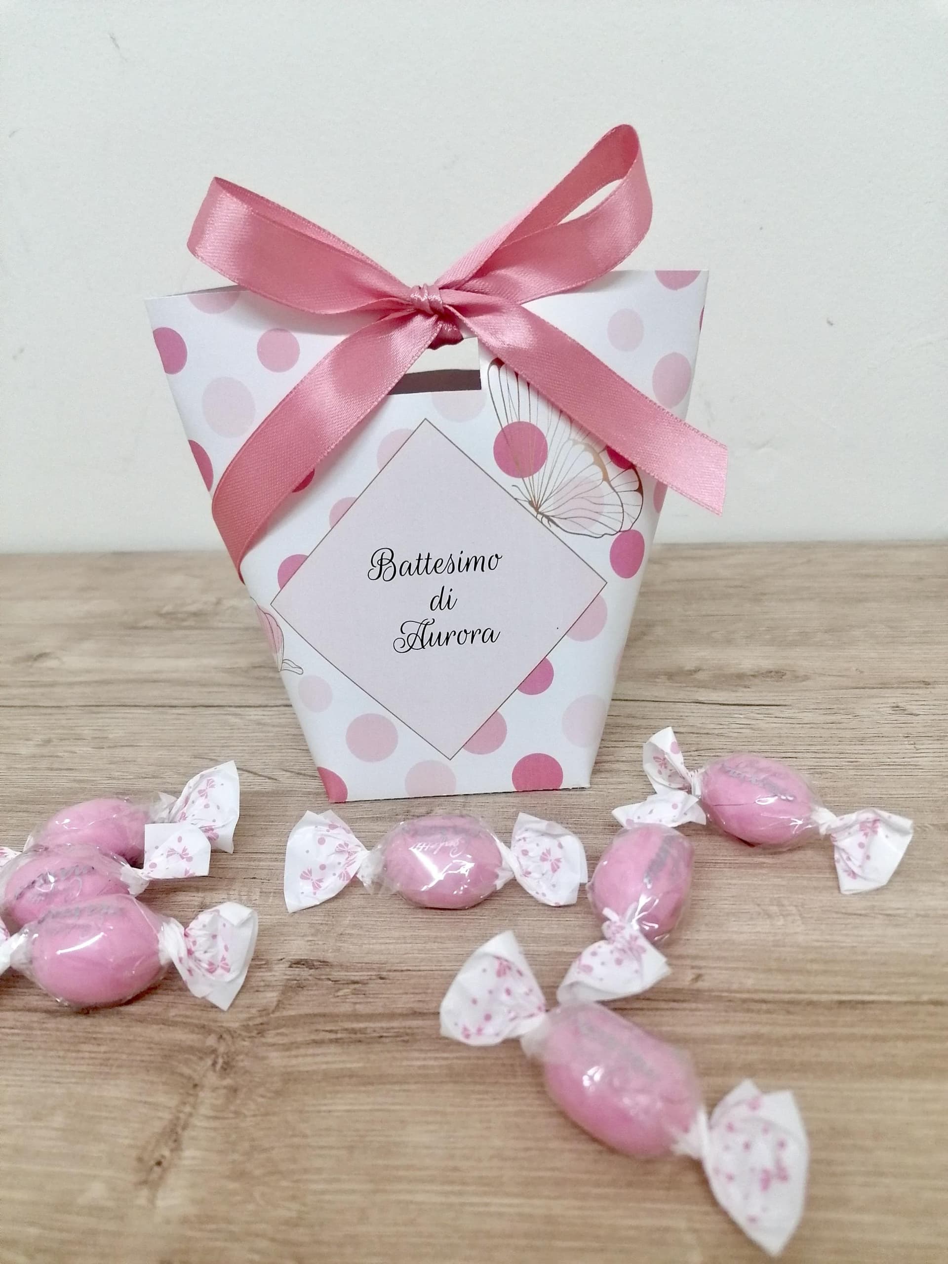 All'interno di questa piccola meraviglia, troverai dei gustosi confetti, deliziosi e colorati come un sorriso. I confetti aggiungono un tocco di dolcezza e gioia, perfetti da regalare come bomboniera o da posizionare con eleganza sul tavolo della confettata, per condividere la gioia di questo momento speciale con i tuoi cari.