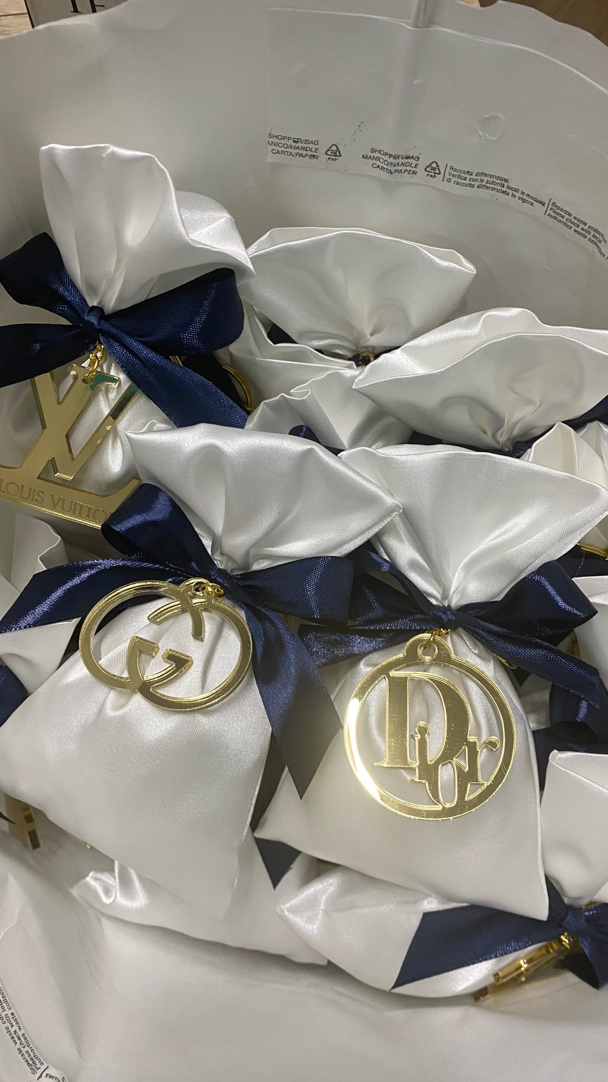 Portachiavi brand con sacchetto tag e confetti