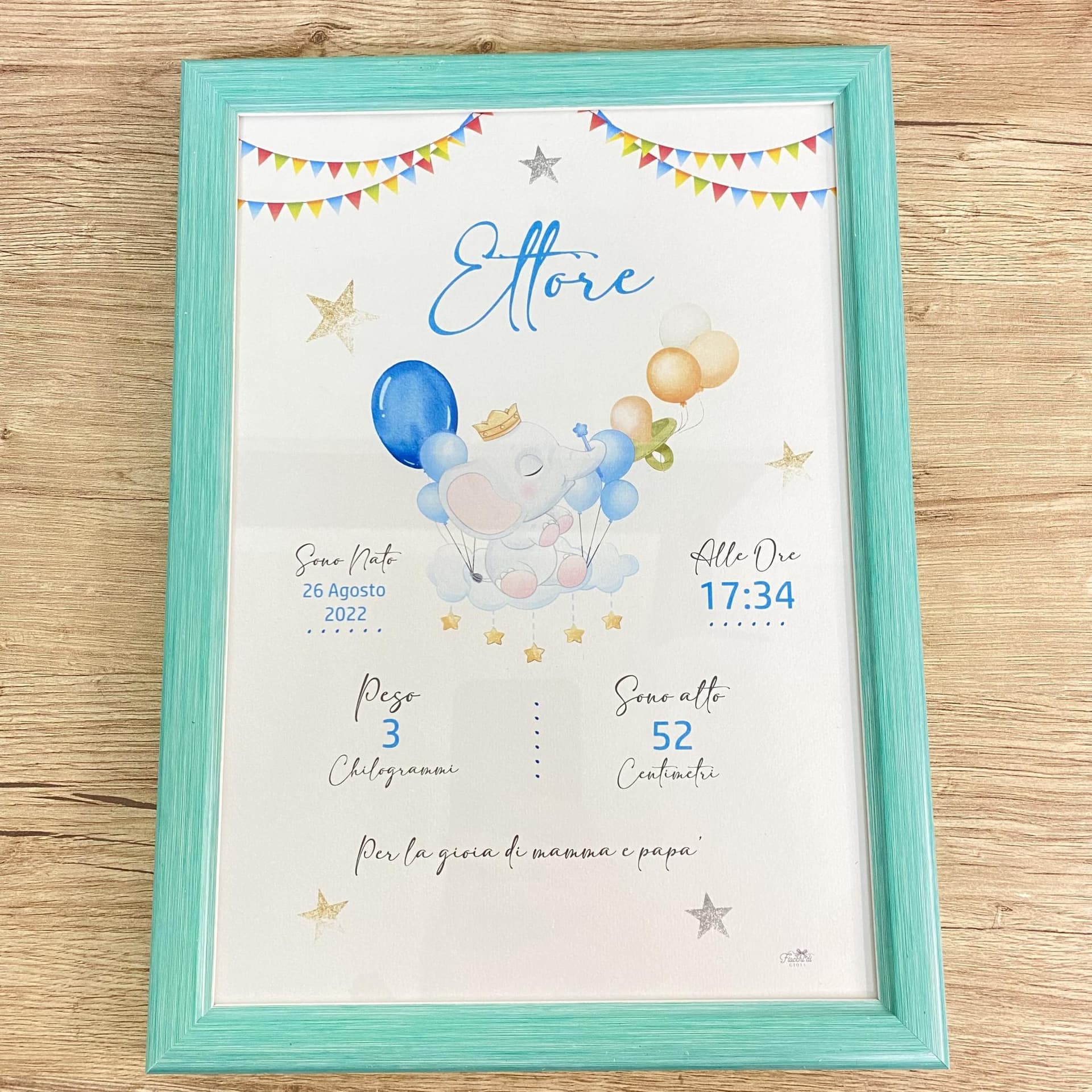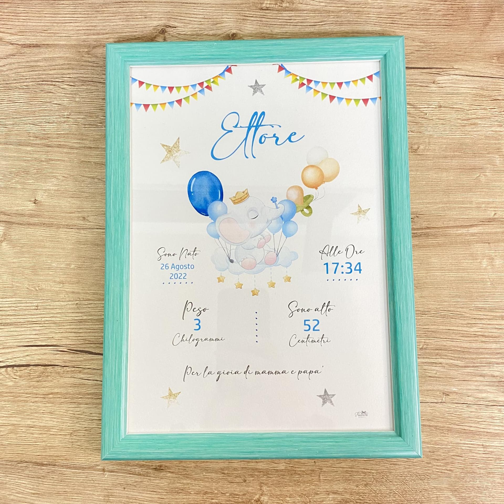 Quadretto nascita con grafica personalizzata