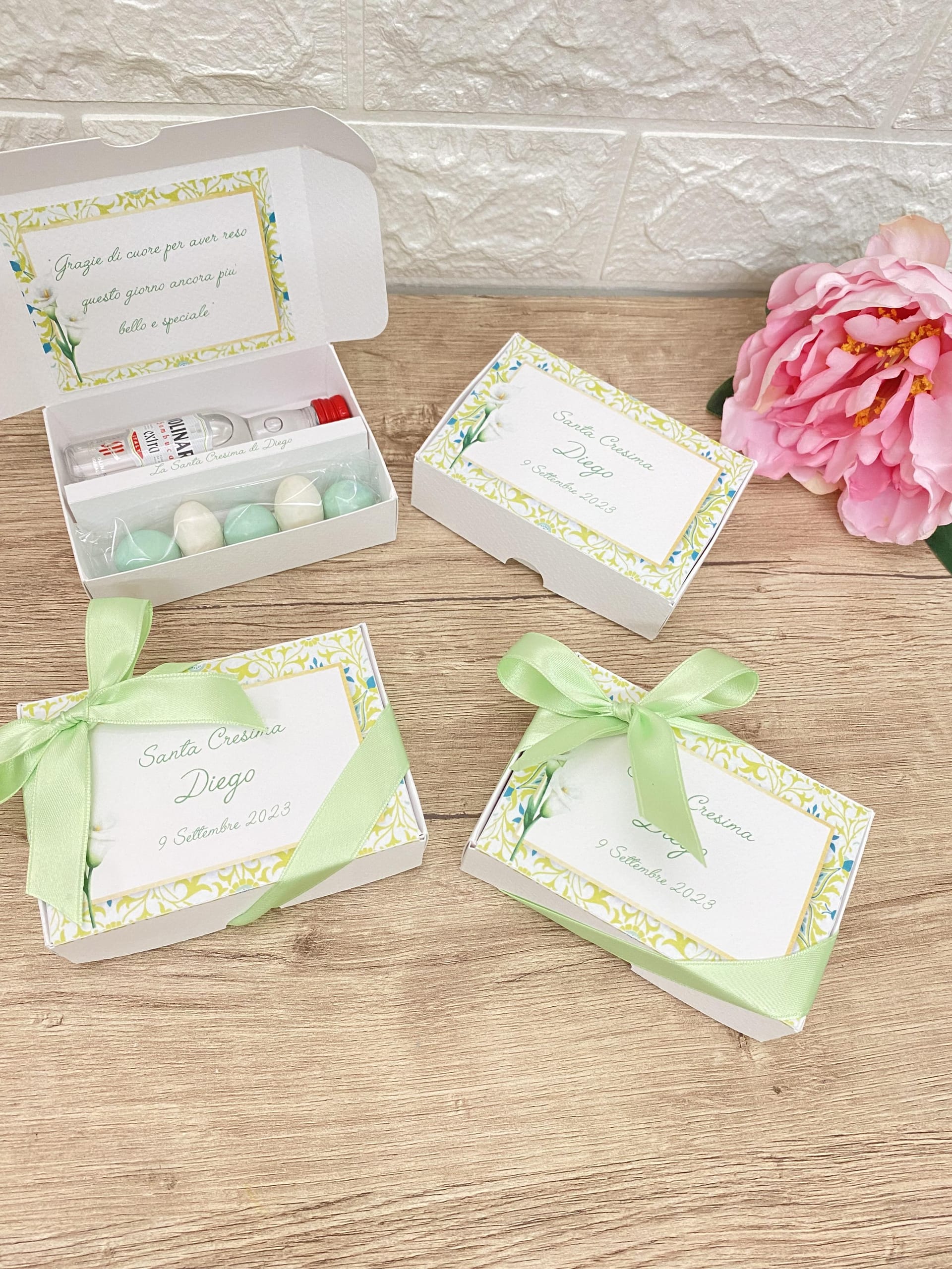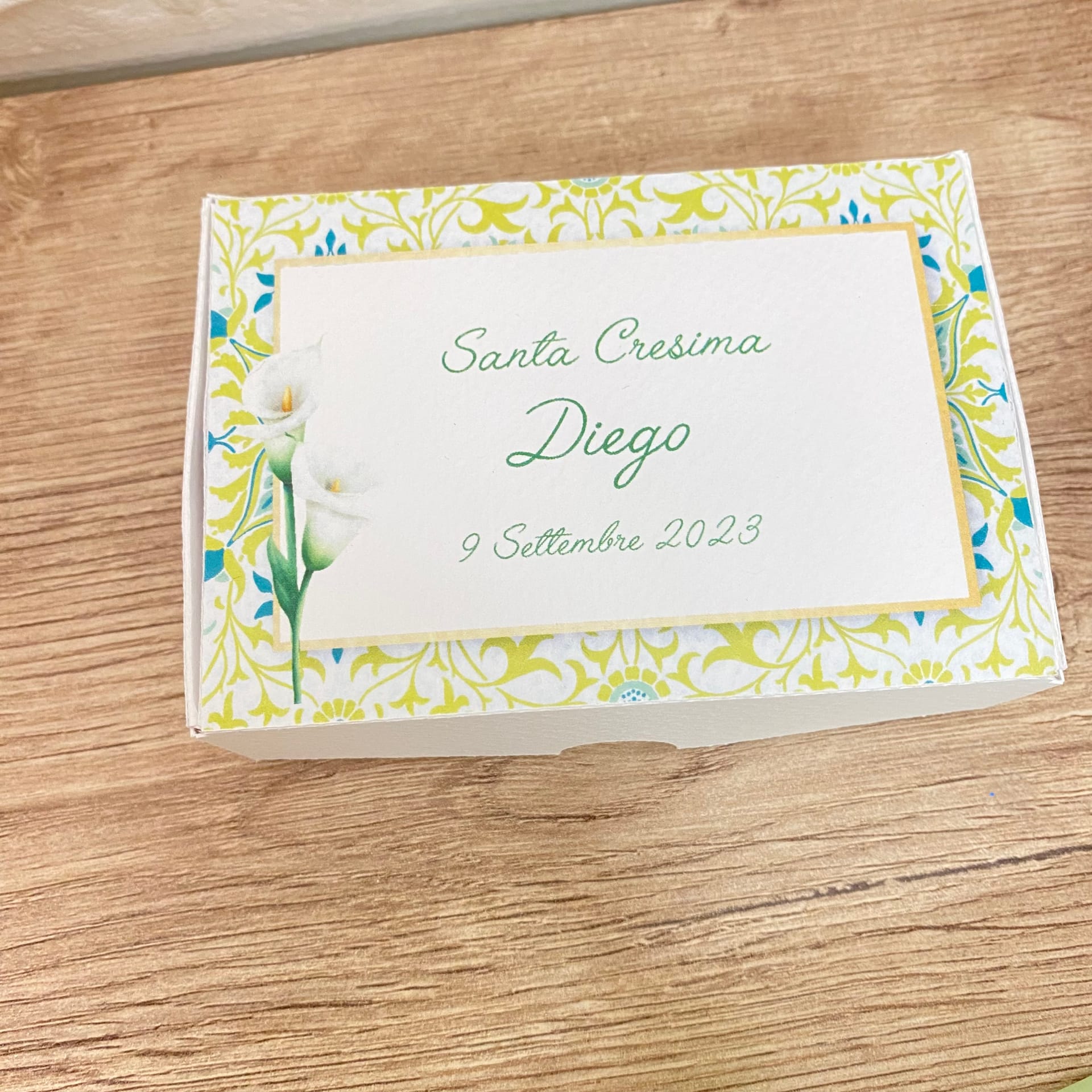 La scatola verrà personalizzata con grafica a tema colore a tua scelta che elaboreremo insieme dopo l'ordine.