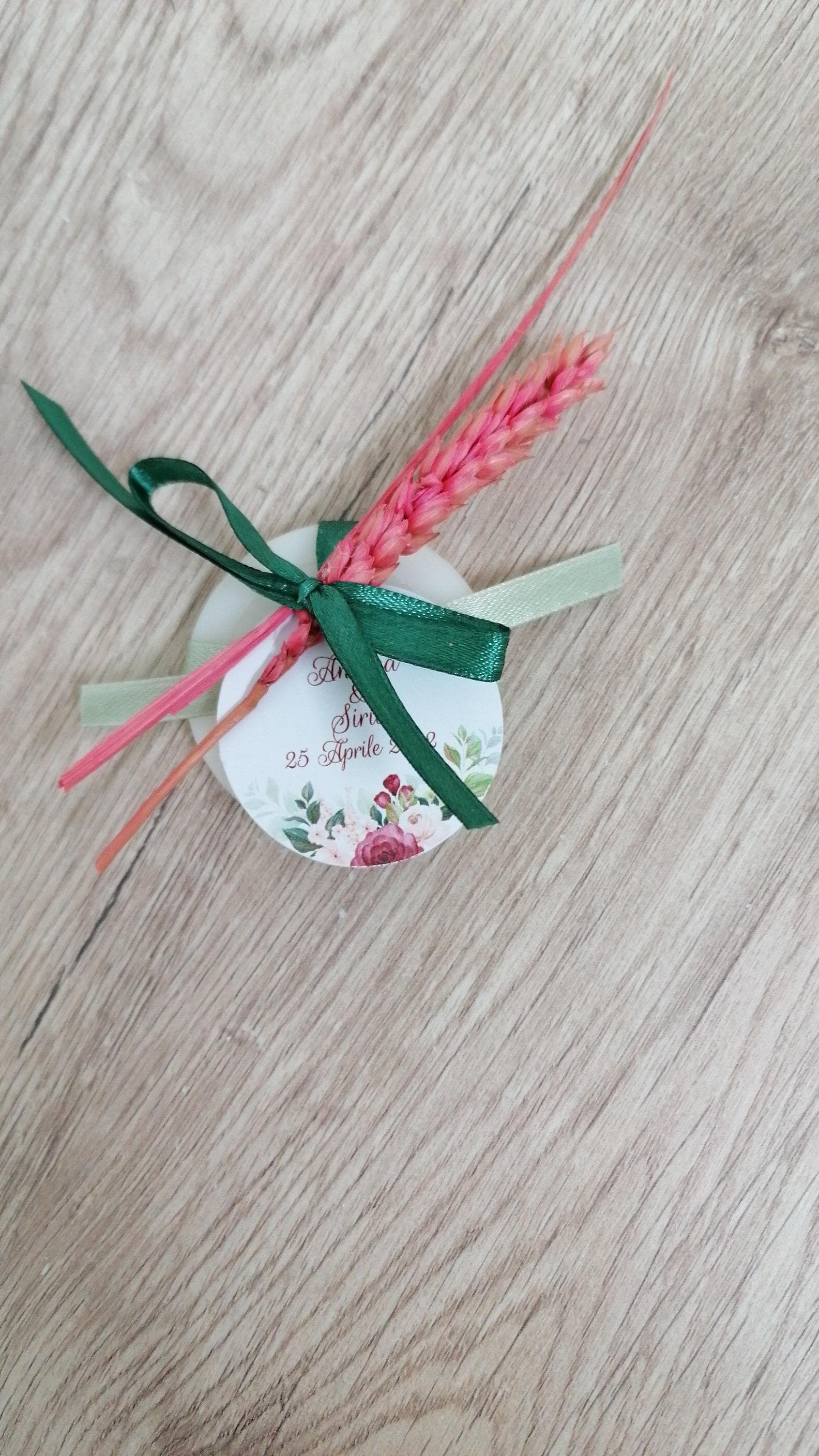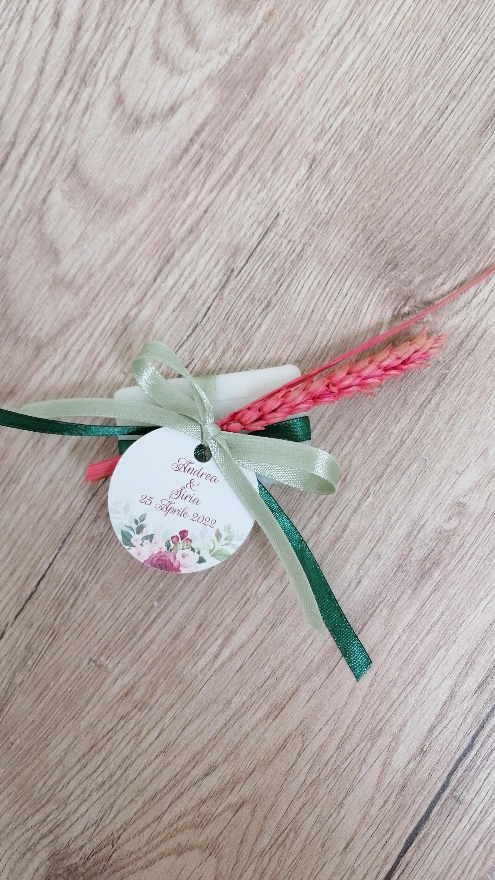 Ogni saponetta, avvolta in un'etichetta personalizzata, diventa un'opera d'arte unica. Queste etichette possono essere create su misura, riportando nomi, date o frasi speciali legate all'evento, trasformando così ogni singola saponetta in un souvenir unico e memorabile.
