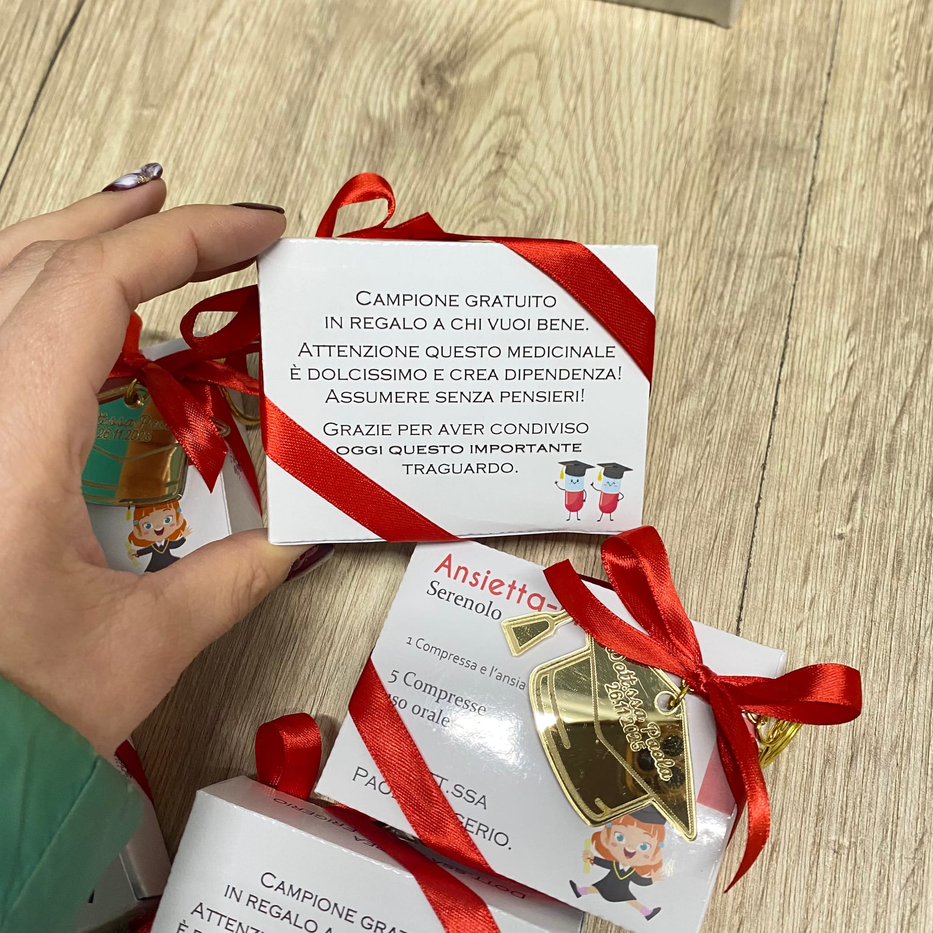 Scatolina portaconfetti stile Farmaco con portachiavi laurea
