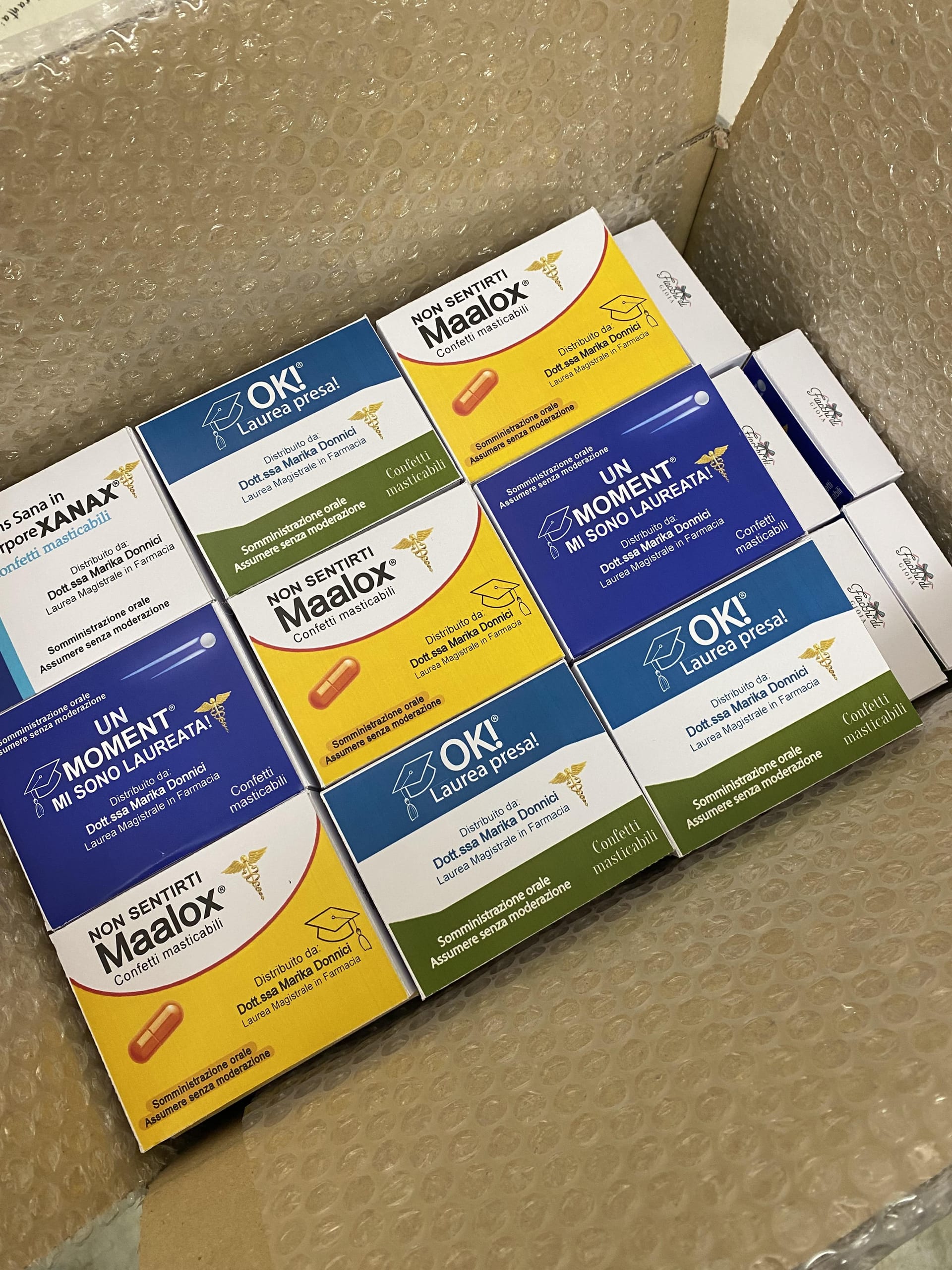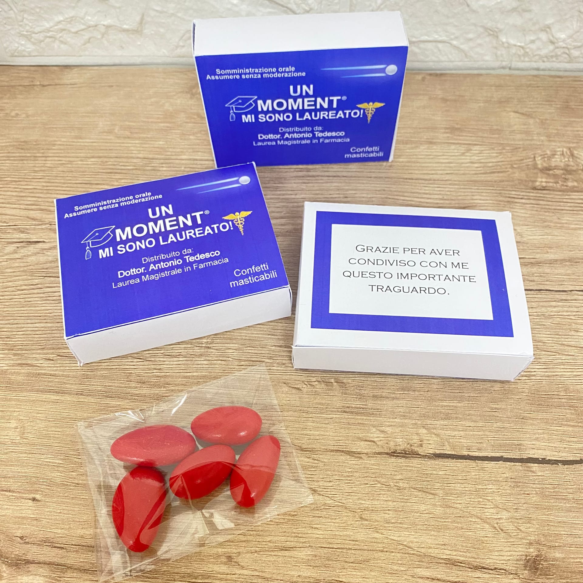Scatoline per laurea con confetti e grafica mod. Farmaco