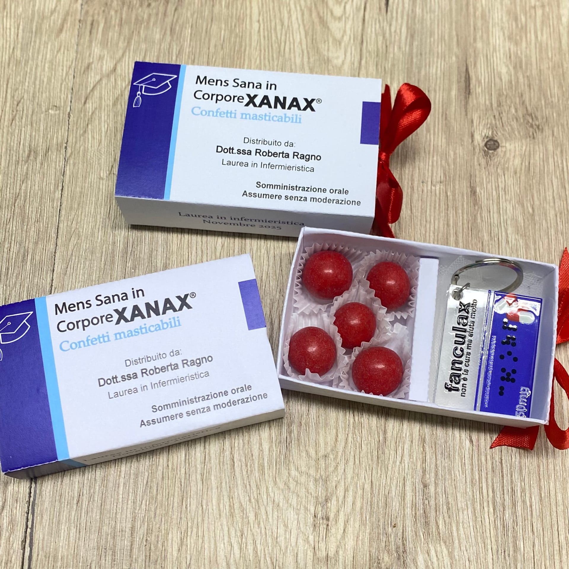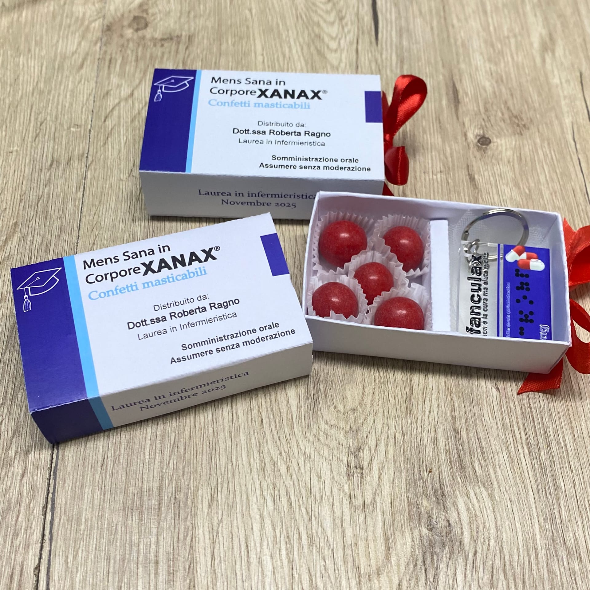 Scatola Portaconfetti Stile Farmaco con Portachiavi Sarcastico – Speciale Laurea