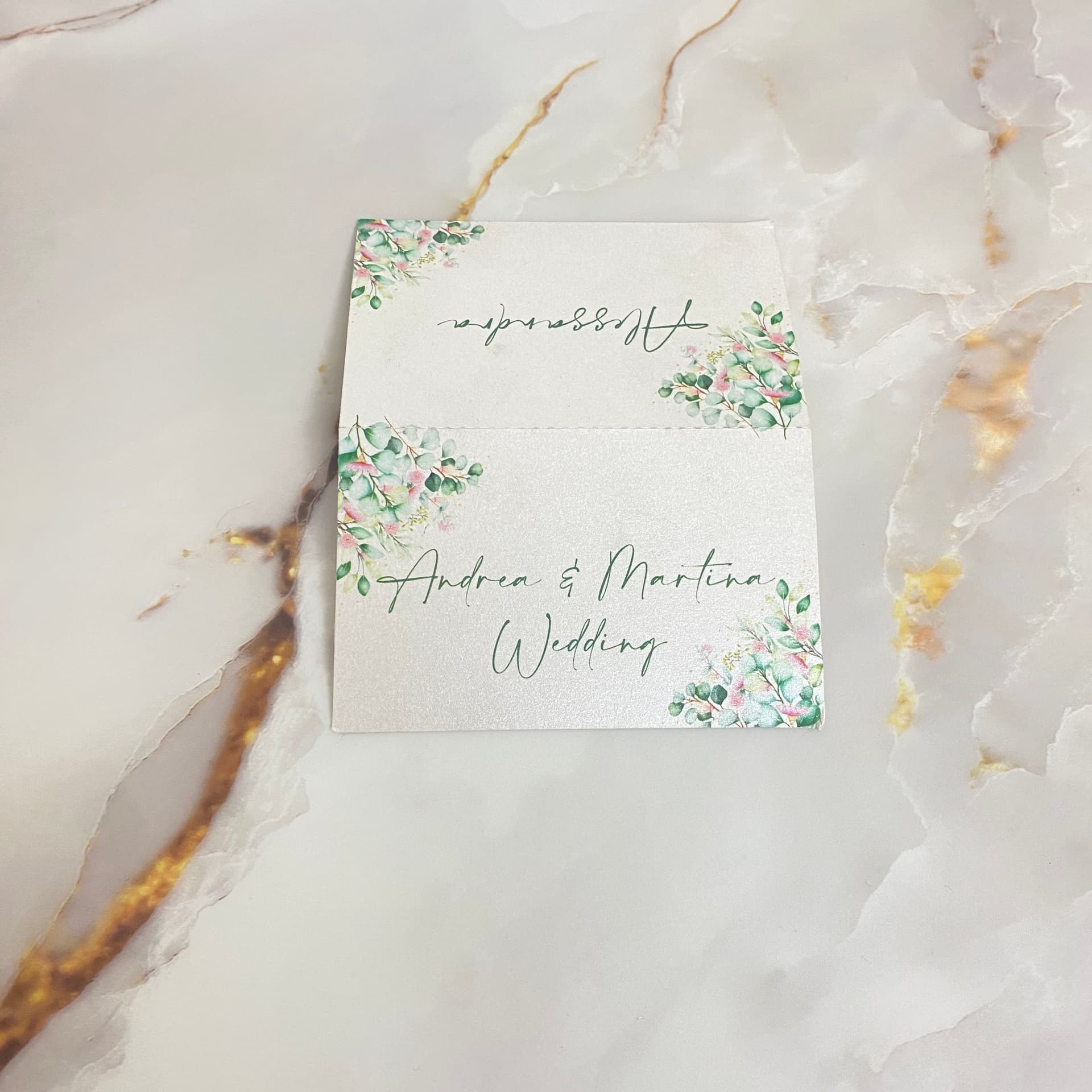 Aggiungi un tocco di eleganza al tuo evento con il nostro segnaposto in cartoncino modello 'Floral'. Semplice ma raffinato, questo segnaposto è altamente personalizzabile per adattarsi al tema del tuo giorno speciale. I nostri grafici lavoreranno con te per creare una grafica unica che renderà la tua tavola indimenticabile. Perfetto per matrimoni, battesimi ed eventi esclusivi.