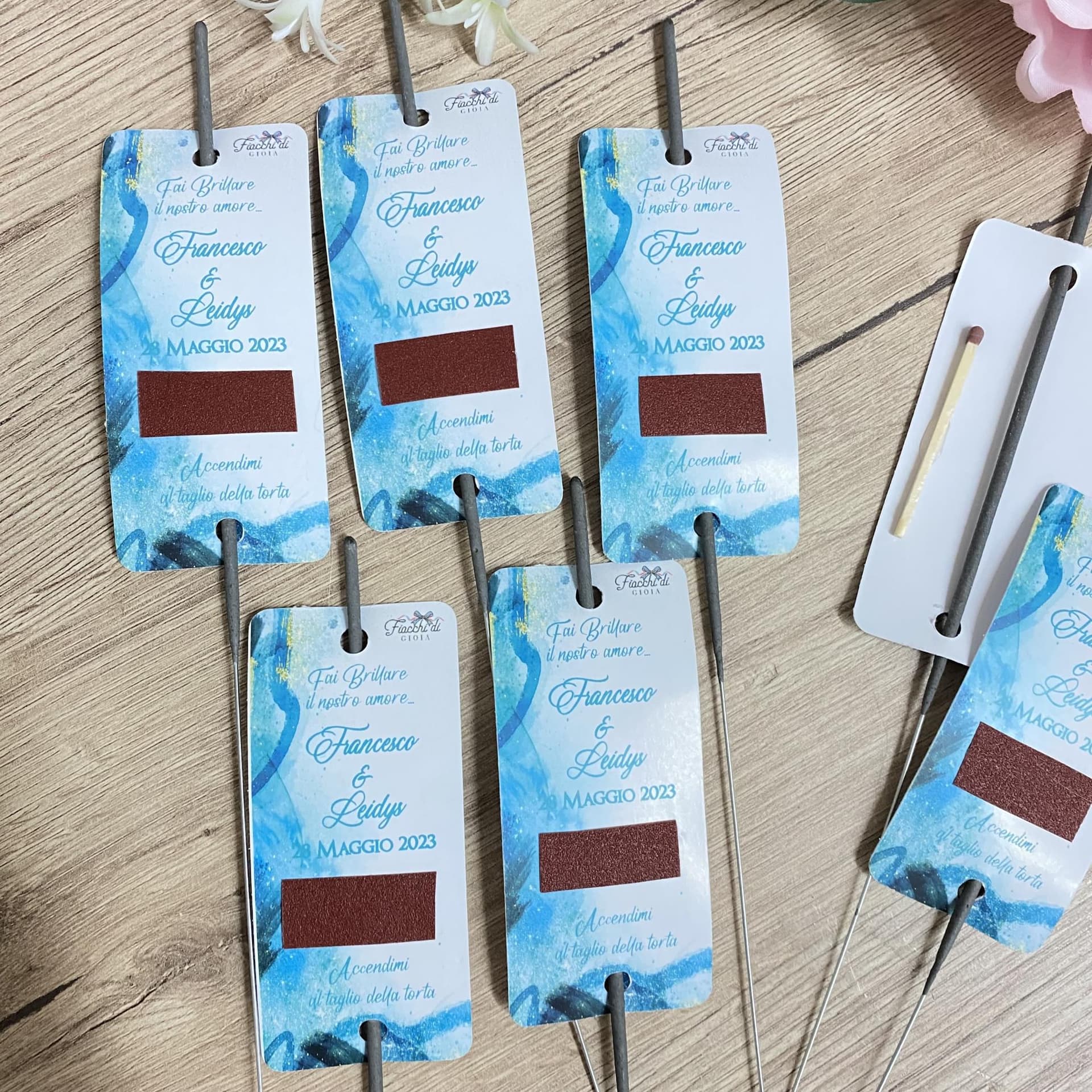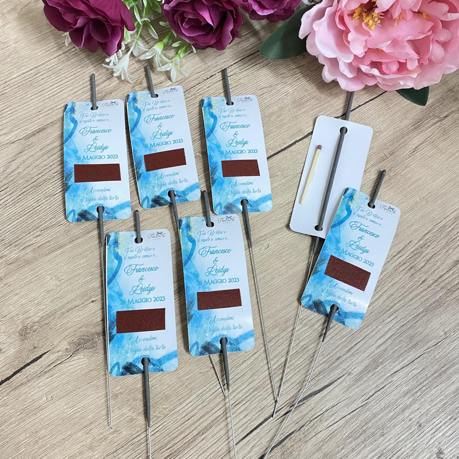 Cosa rende le nostre scintille personalizzate così speciali? Innanzitutto, ogni scintilla viene creata con cura e precisione, utilizzando solo materiali di alta qualità per garantire la massima sicurezza e durata. Possiamo anche personalizzare le scintille con il vostro nome, logo o un messaggio speciale, trasformandole in un ricordo unico che i vostri ospiti potranno conservare per sempre.