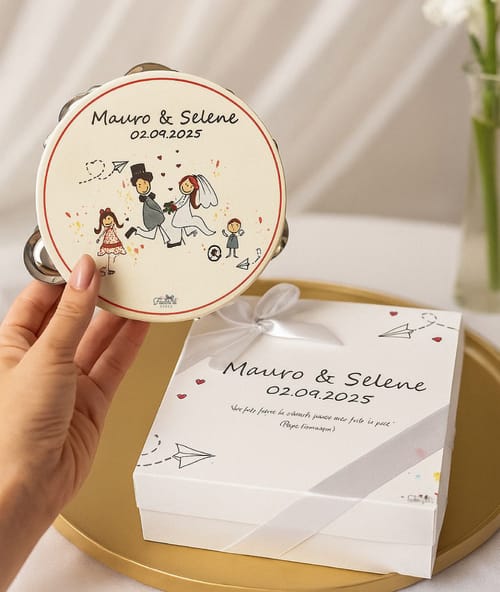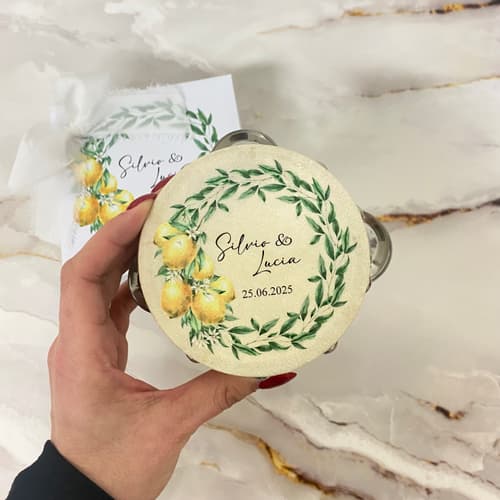 Porta un tocco di tradizione e autenticità al tuo evento con i nostri tamburelli segnaposto in legno, personalizzati con stampa UV e grafica a scelta del cliente. Questi piccoli capolavori evocano lo stile siciliano e mediterraneo, con il loro design unico e dettagli vibranti che celebrano la cultura e il calore delle nostre terre. Perfetti per matrimoni, feste ed eventi speciali, i tamburelli non sono solo segnaposto, ma anche ricordi indimenticabili per i tuoi ospiti. Lascia che il fascino del Mediterraneo risuoni nel tuo giorno più bello!