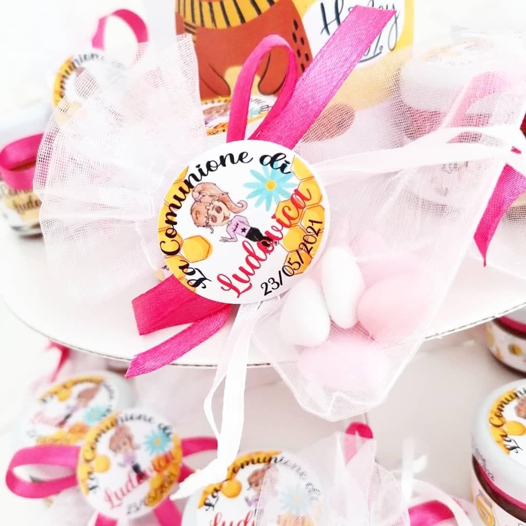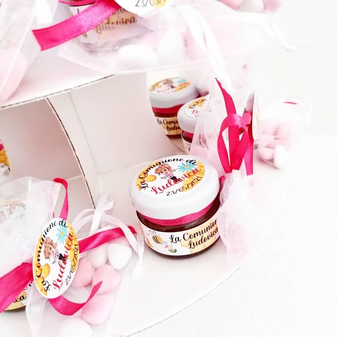 - 1 barattolino di miele da 28gr con etichetta personalizzata elaborata su richiesta di colori o genere,