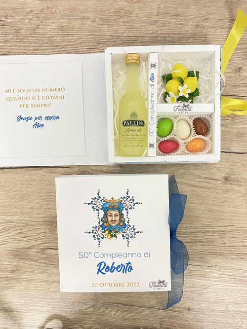 Ogni ventaglio è custodito in una scatola personalizzata, curata nei minimi dettagli, che racchiude 7 gustosi confetti, simbolo di felicità e prosperità.